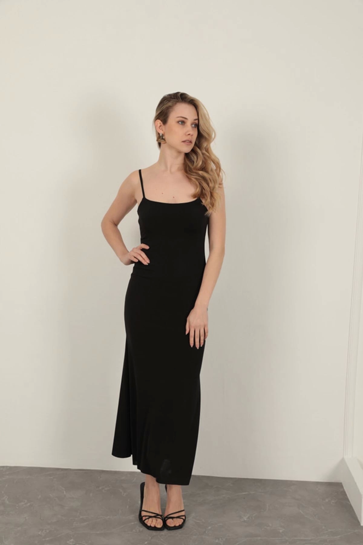 ميزات فستان أساسي بحزام حبل من القماش الرملي - أسود من BEEMU