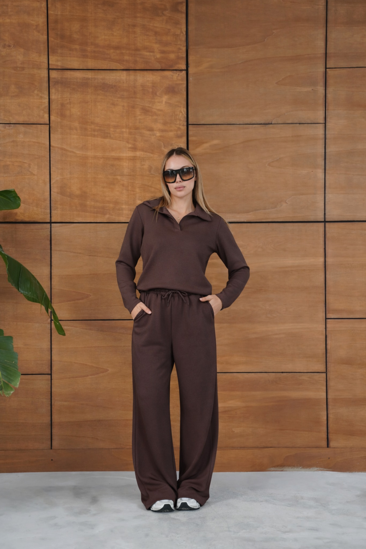 ميزات طقم أساسي بياقة بولو باللون البني من BELISTIL