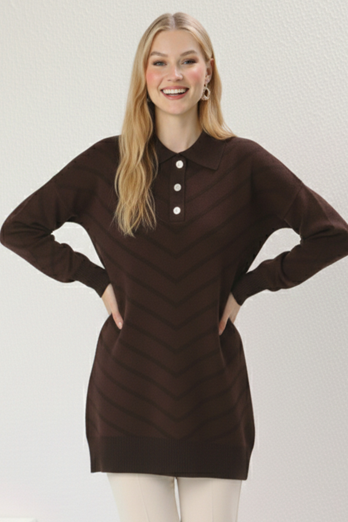ميزات تونيك مزين بنقوش للنساء المحجبات N3304 بني من benguen