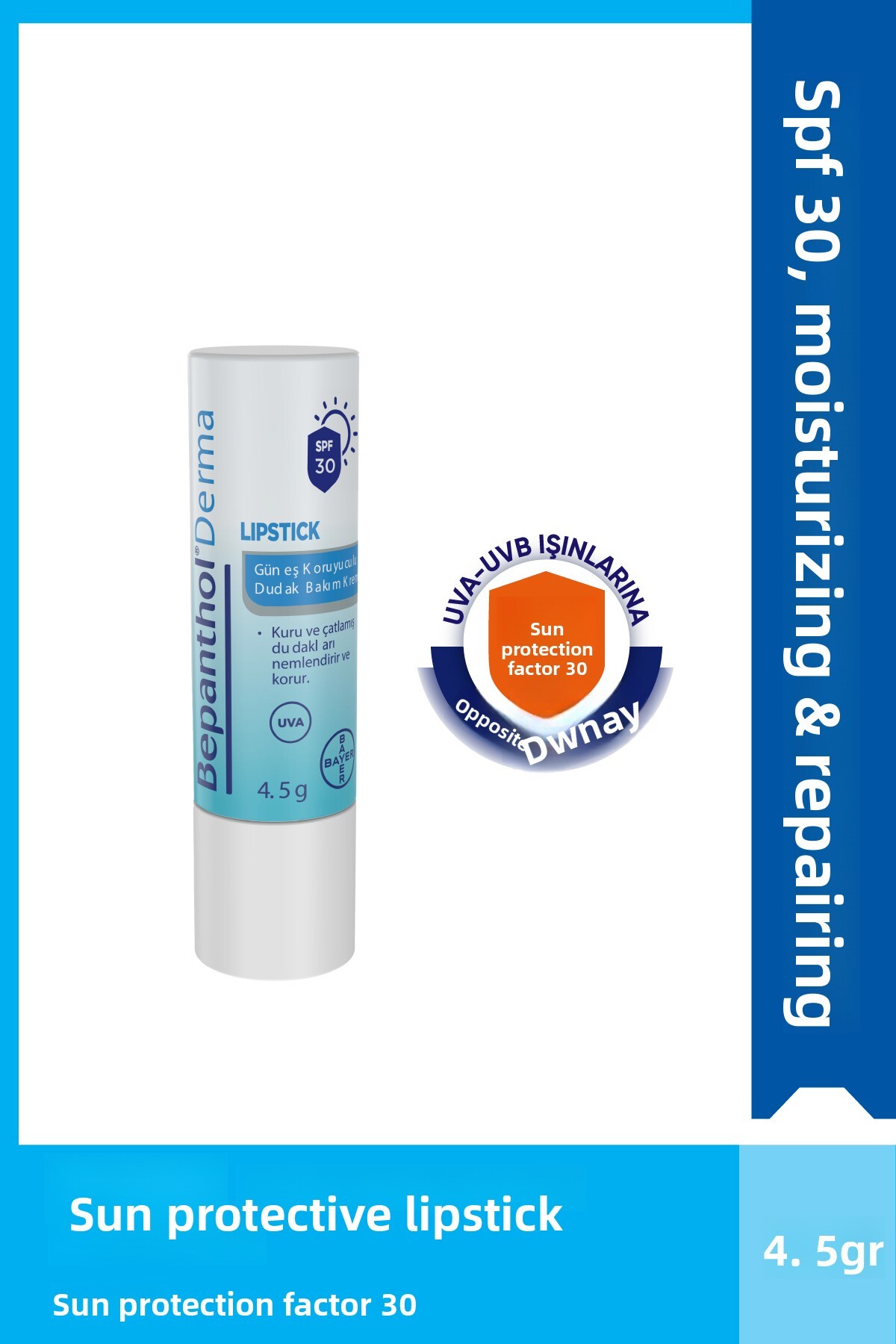 افتح غطاء كريم Bepanthol Lipstick Güneş Koruyucu Dudak Bakım Kremi. أدر الأنبوب برفق وطبق المنتج على شفتيك. مناسب للاستخدام اليومي.