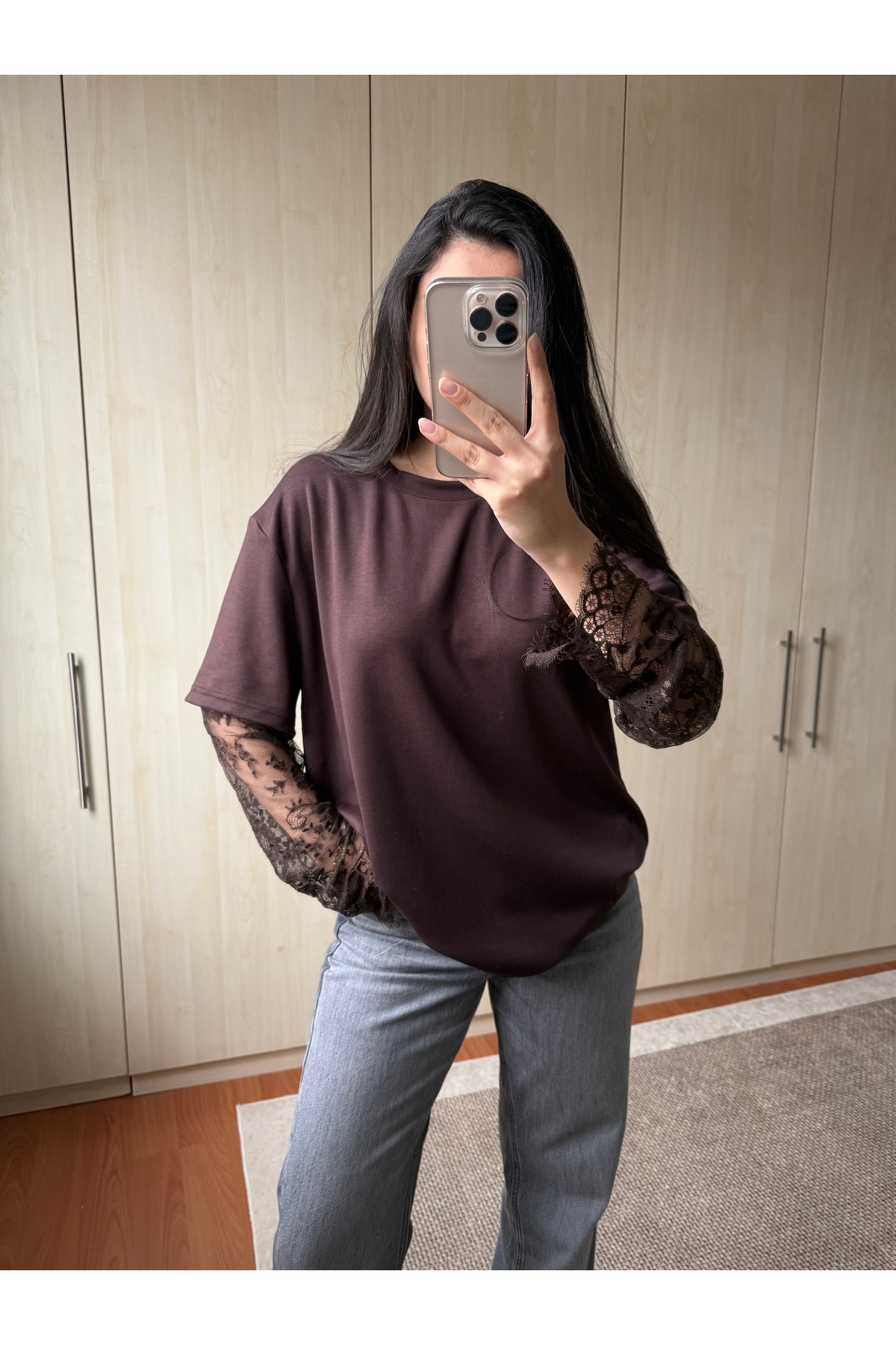 ميزات بلوزة بأكمام من الدانتيل الشفاف وياقة دائرية من Berf