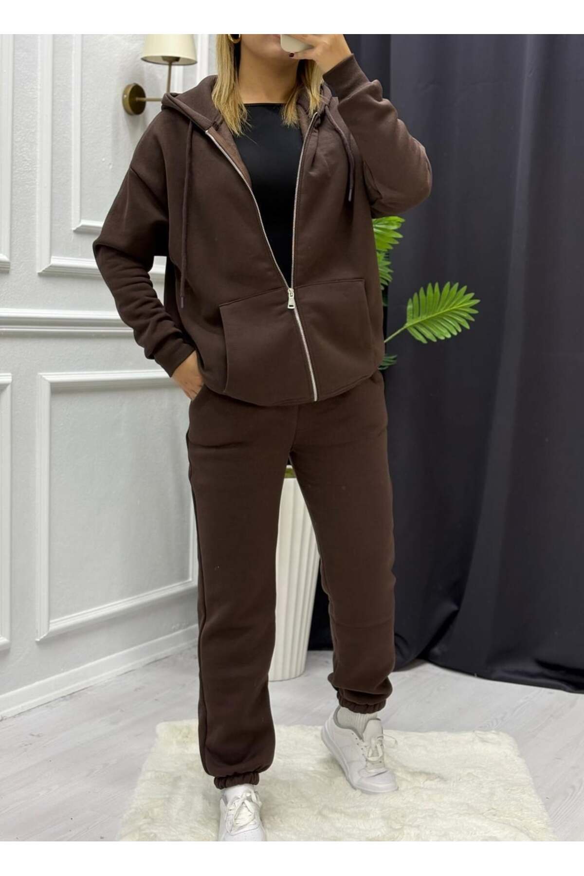 ميزات طقم بدلة رياضية بثلاثة خيوط مع سحاب من BERİLLİON