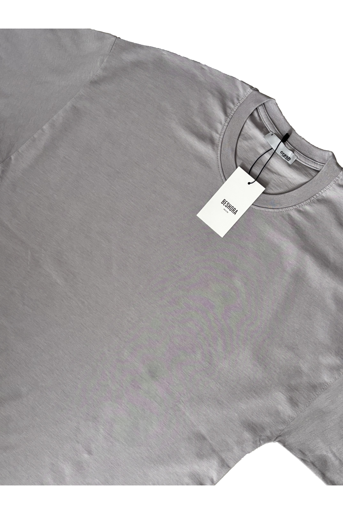 Beshora تي شيرت رجالي كبير الحجم بدون طباعة وياقة دائرية باللون الرمادي