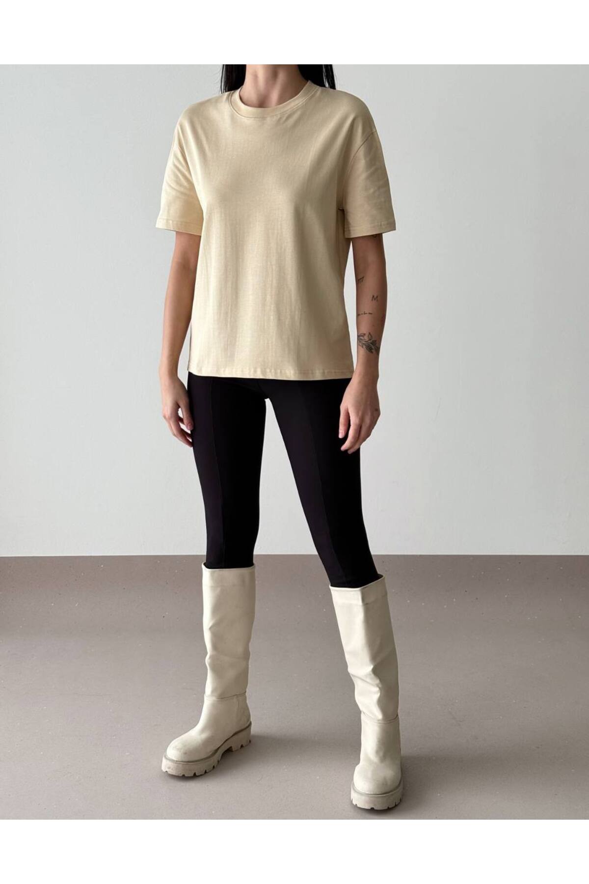 Beshora تي شيرت باركر كريم قصة فضفاضة الأساسي