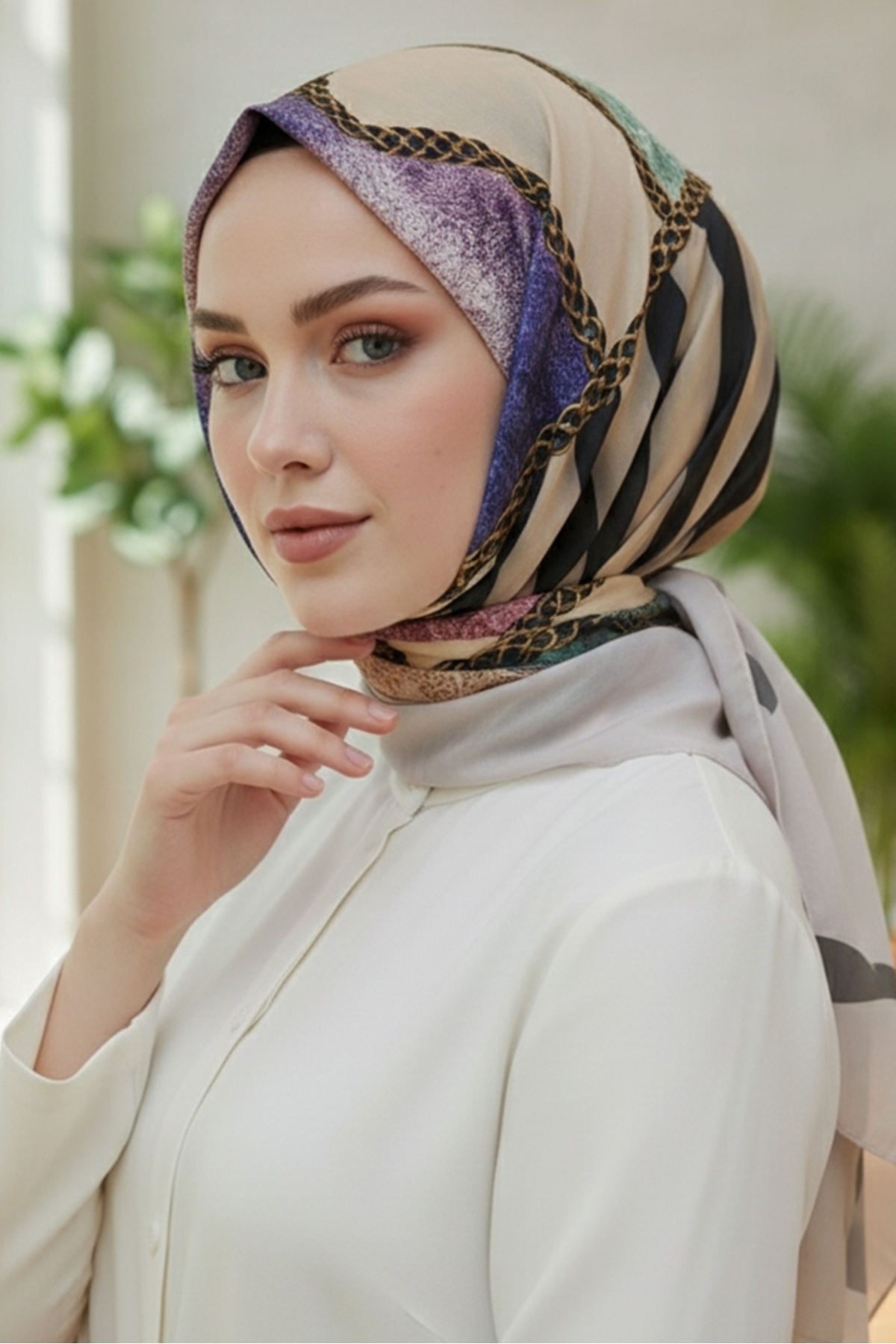 Bestenur وشاح منقوش ناعم Jayla 1010 - حجري