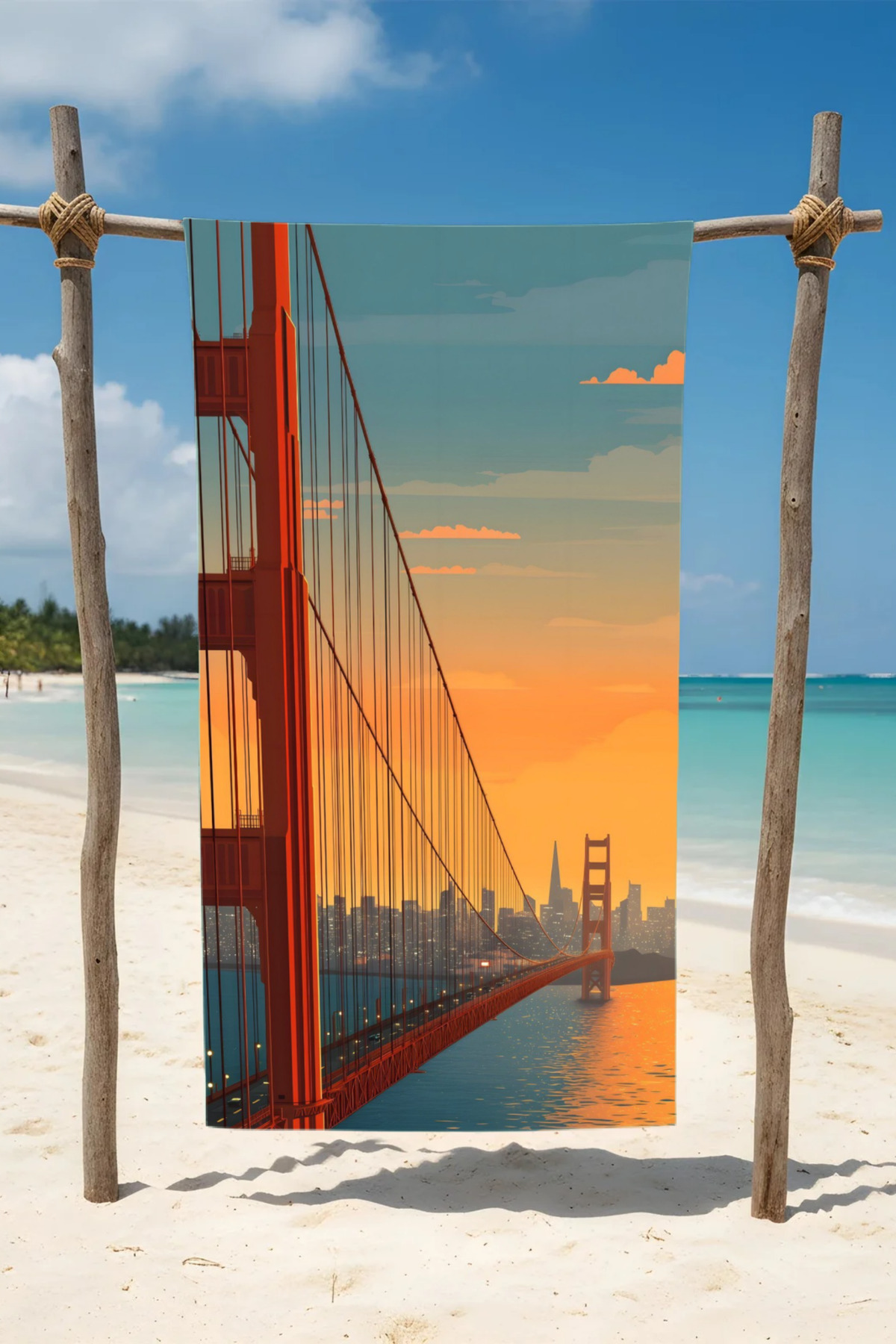ميزات منشفة شاطئ قطنية بنمط جسر - تصميم منقوش - 75x150 سم من BETHA