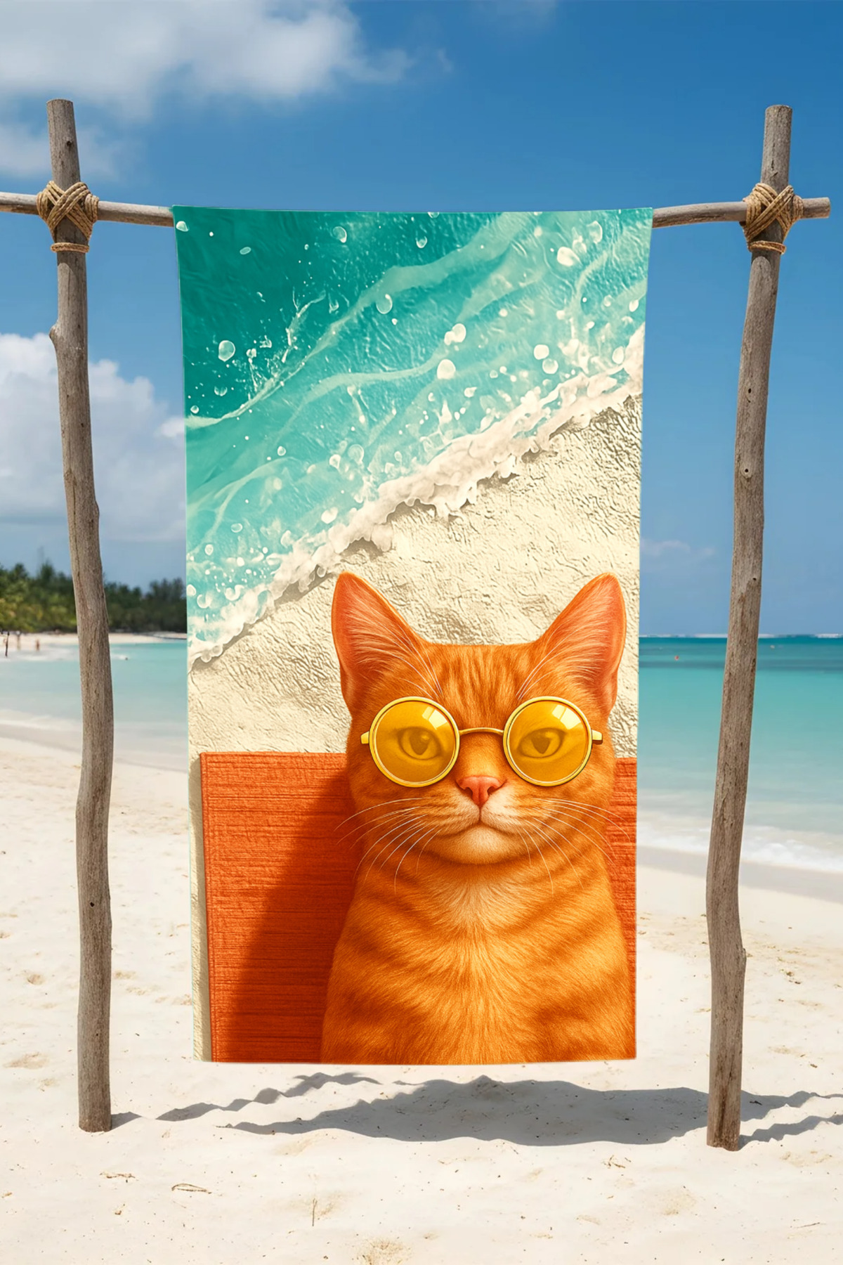 ميزات منشفة شاطئ قطنية بنمط القطط - تصميم منقوش من BETHA