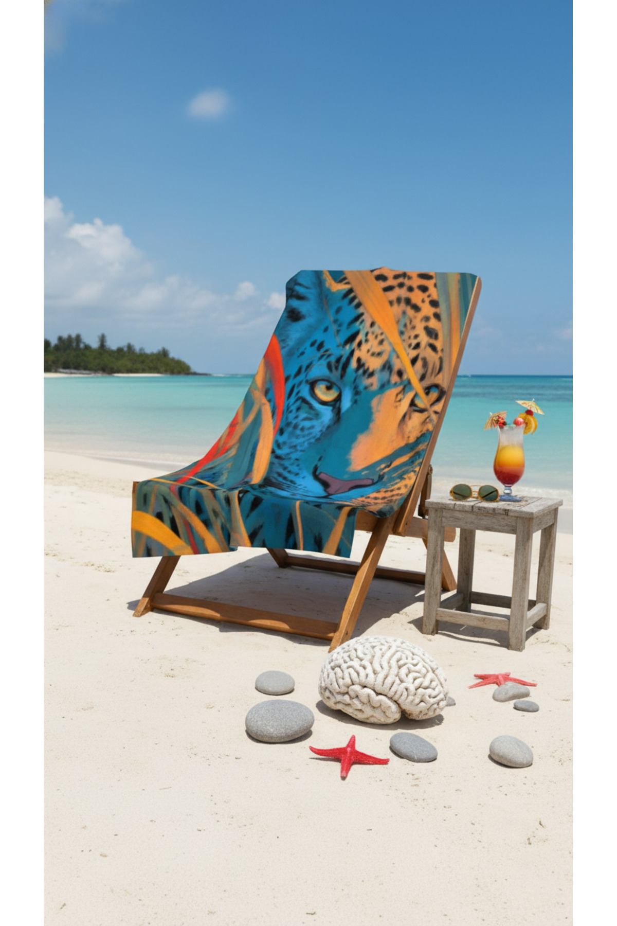 BETHA منشفة شاطئ قطنية بنقشة الفهد – تصميم منقوش – 75x150 سم