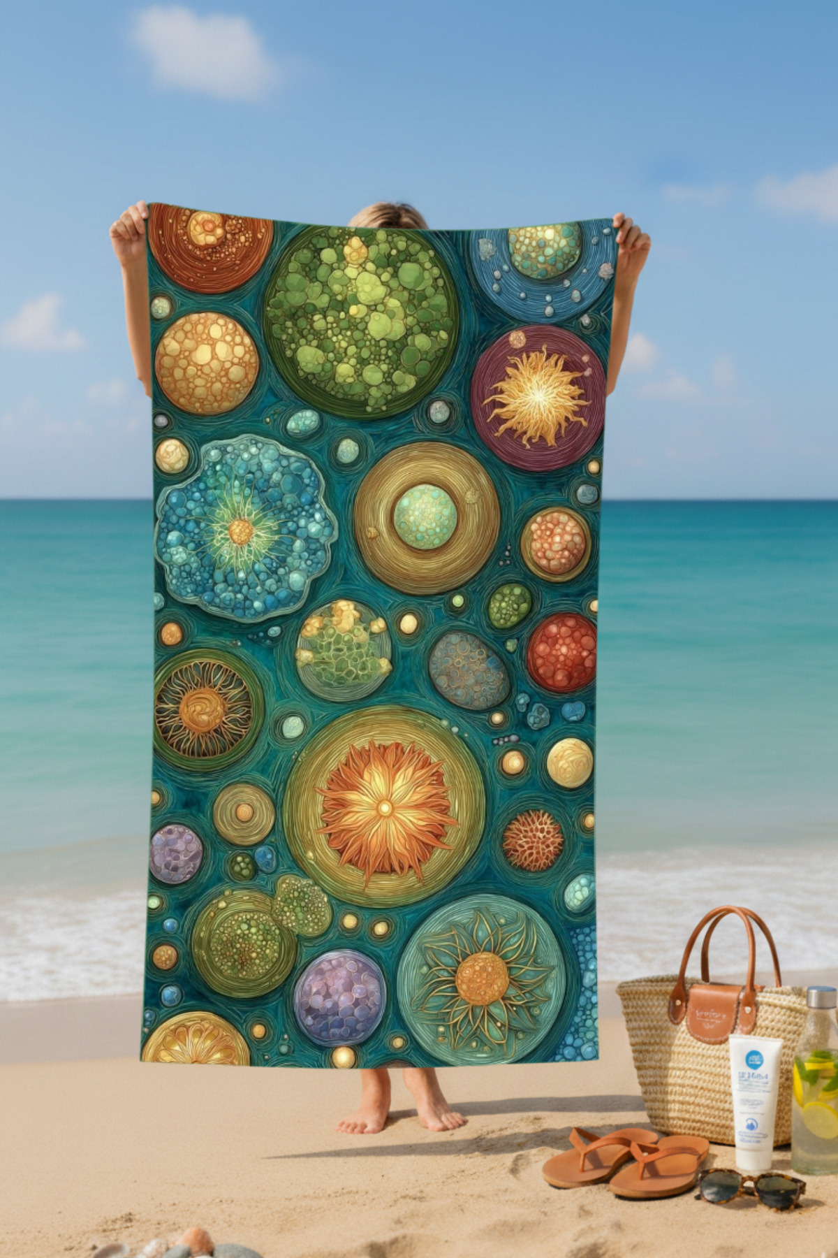 BETHA منشفة شاطئ قطنية بنمط دائري – تصميم منقوش – 75x150 سم