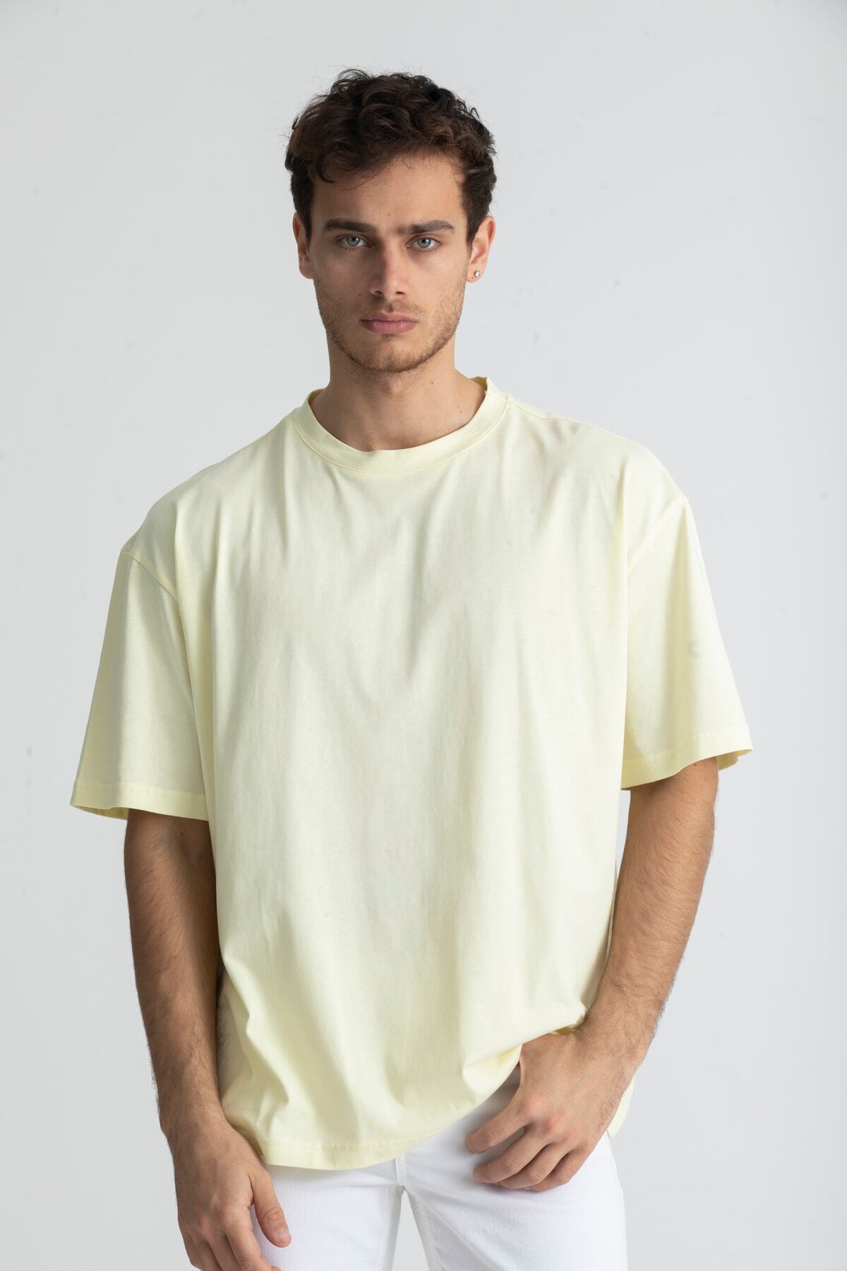ميزات تي شيرت أساسي كبير الحجم أصفر فاتح من BGK