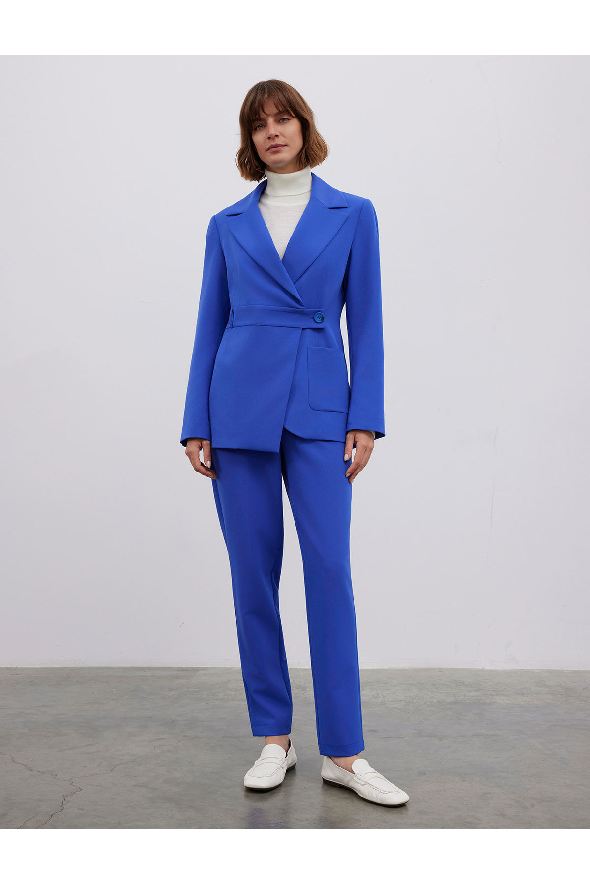 ميزات سترة بليزر بقصة غير متماثلة مع تفاصيل الأزرار من BGN workshop