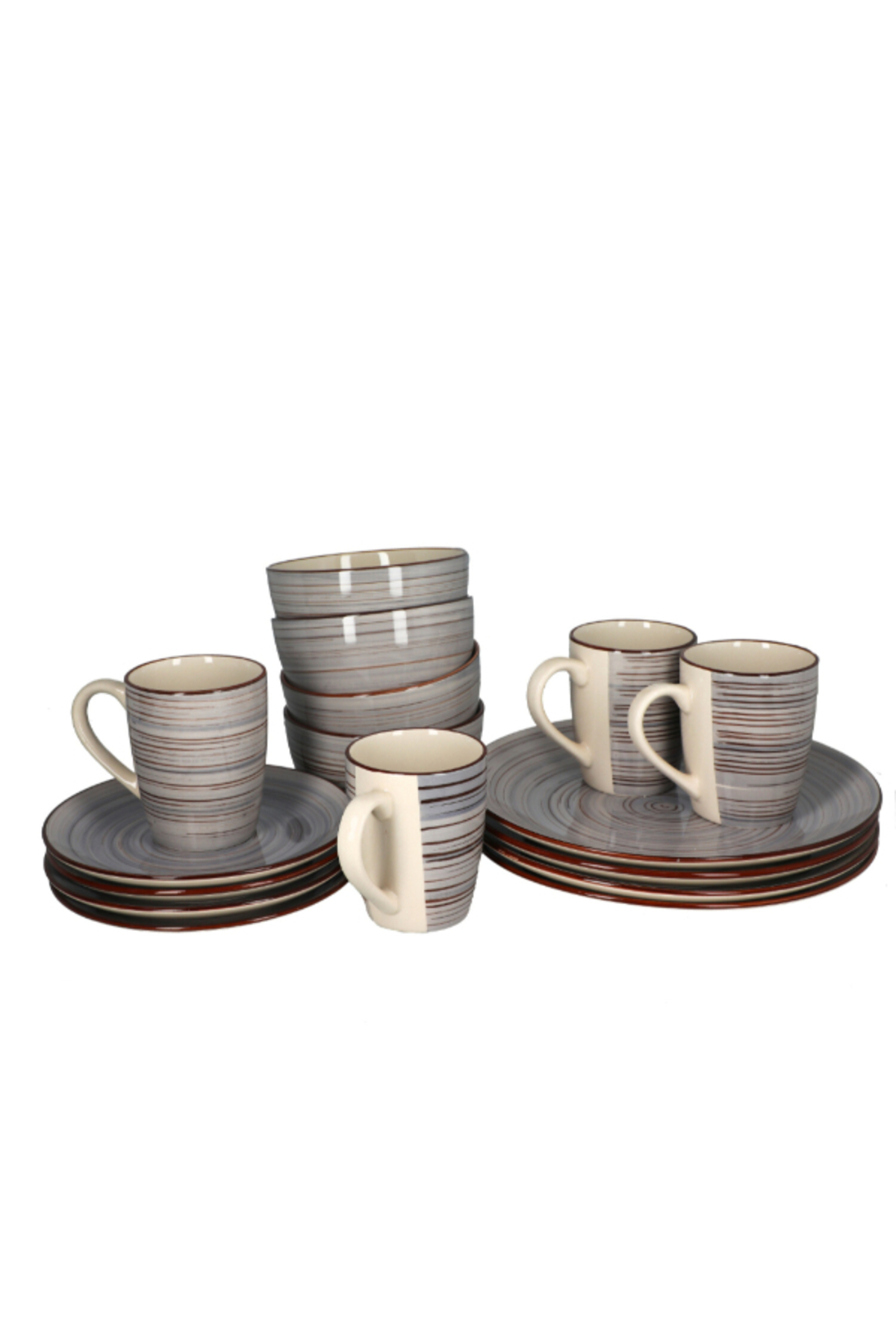 ميزات طقم عشاء من الفخار بنمط مخطط، مكون من 16 قطعة من Bien Servi