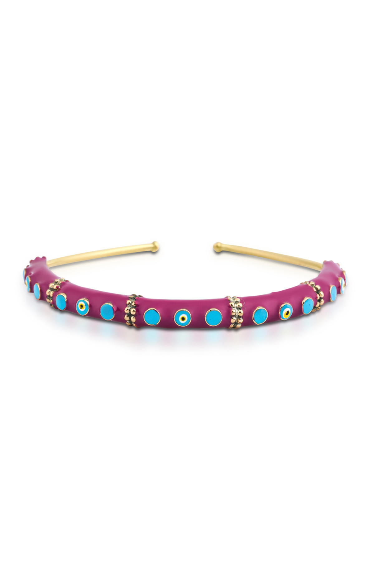 ميزات سوار وردي اللون عليه عبارة "عين الحسد" من Biggdesign