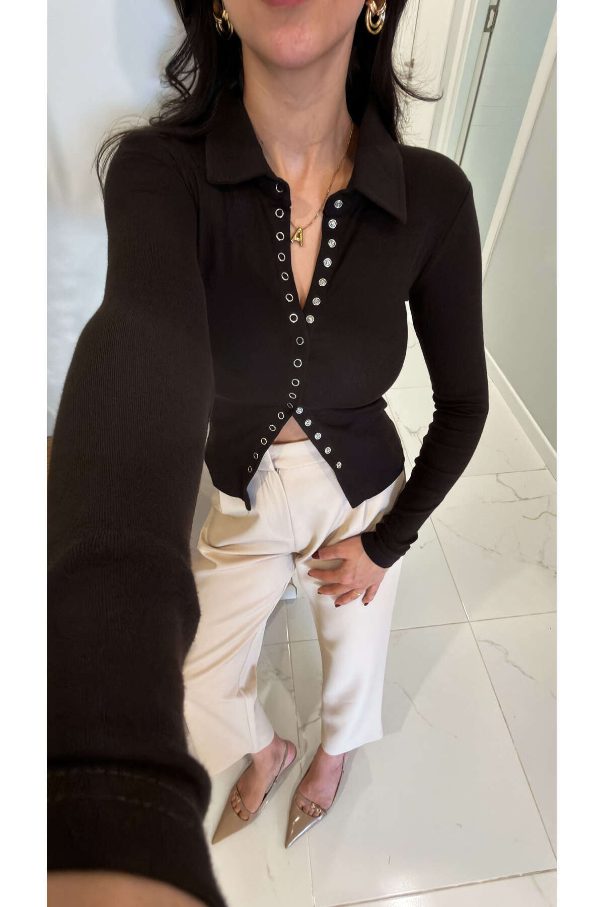 BİRCANÇİL بلوزة هيرتا بولو كاروهات بياقة مزركشة