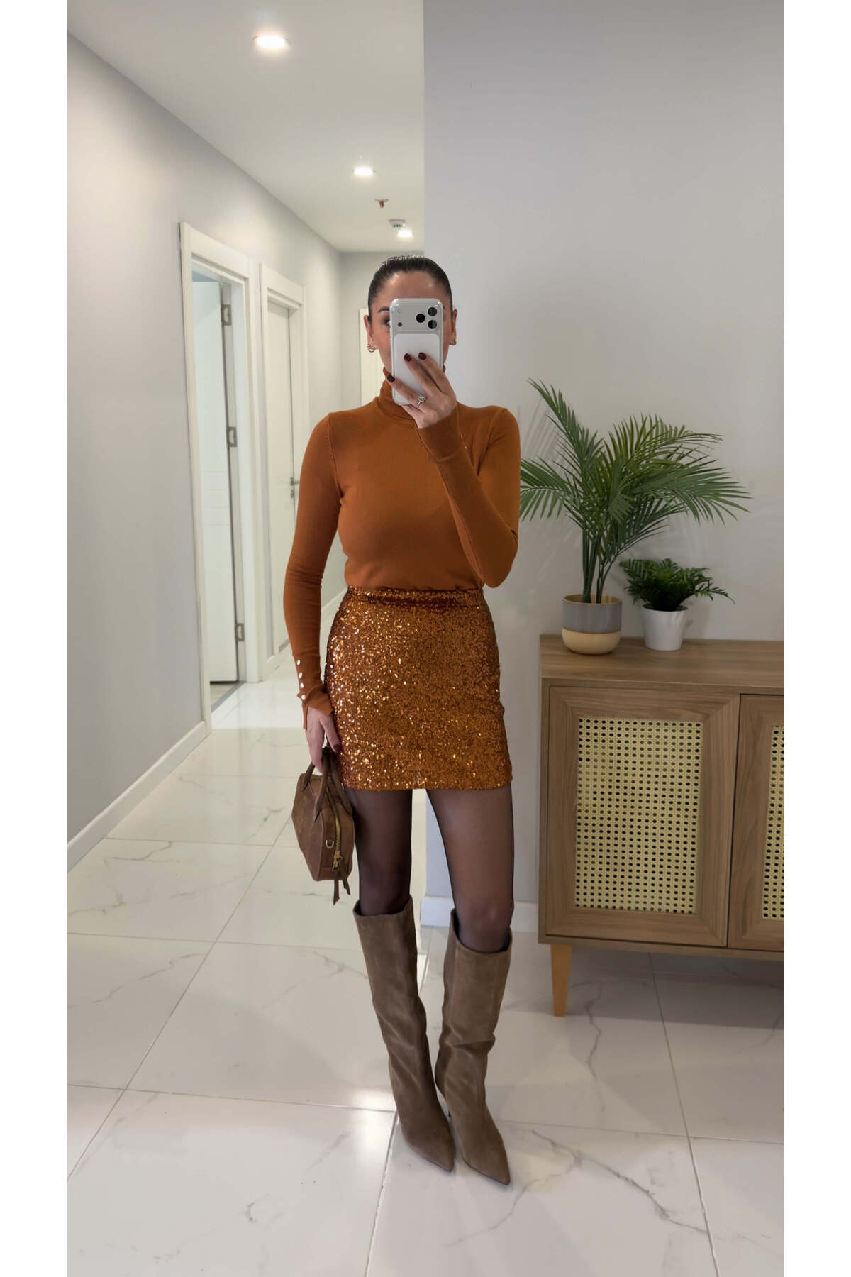 ميزات تنورة جوسا كيريميت ميني بول ذات الترتر من BİRCANÇİL