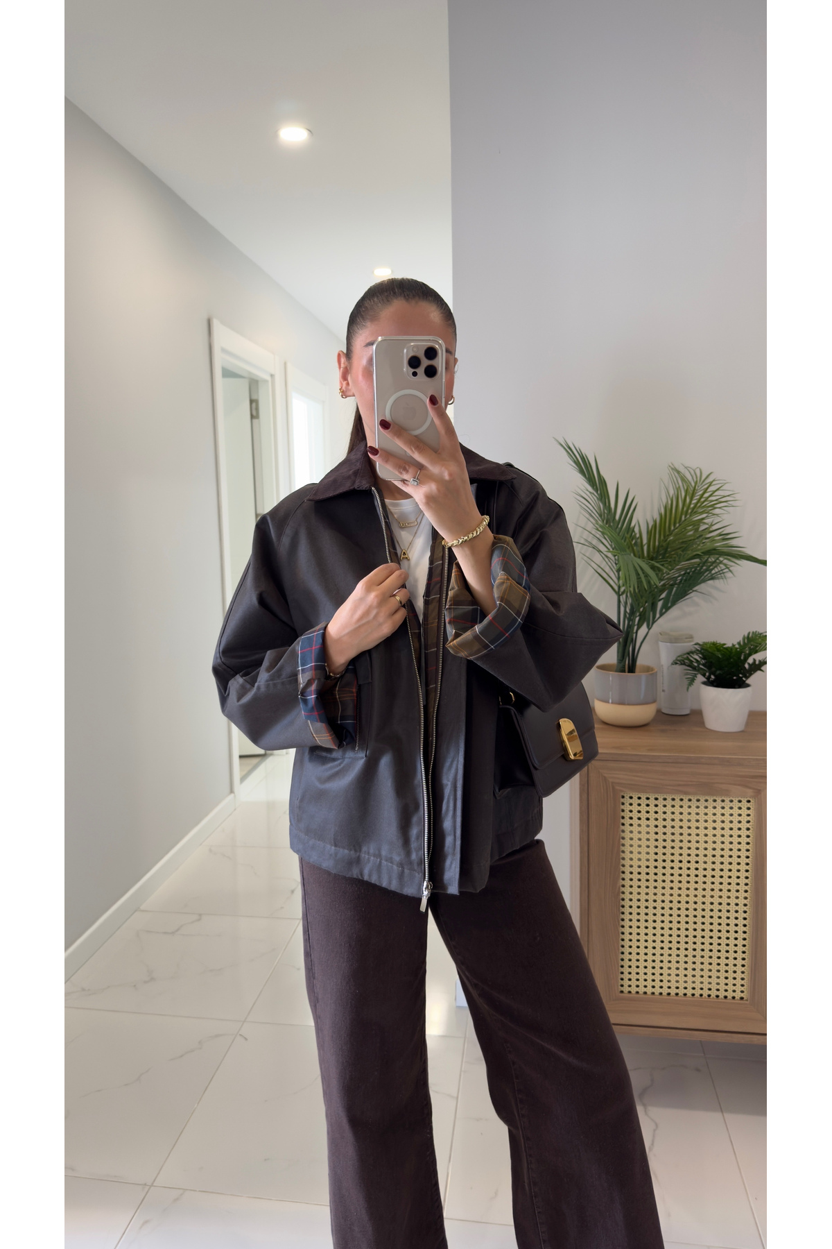 BİRCANÇİL سترة سيدا ذات ياقة مخملية باللون البني الداكن