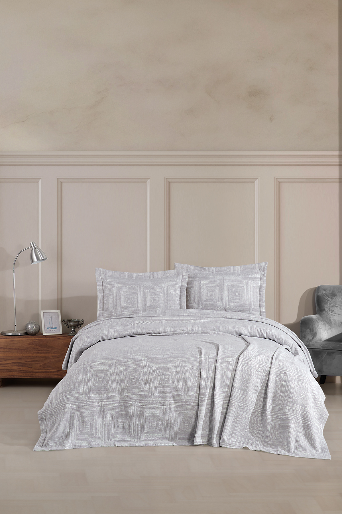 BİRHOME طقم مفرش سرير مزدوج باللون الرمادي من كونكورد