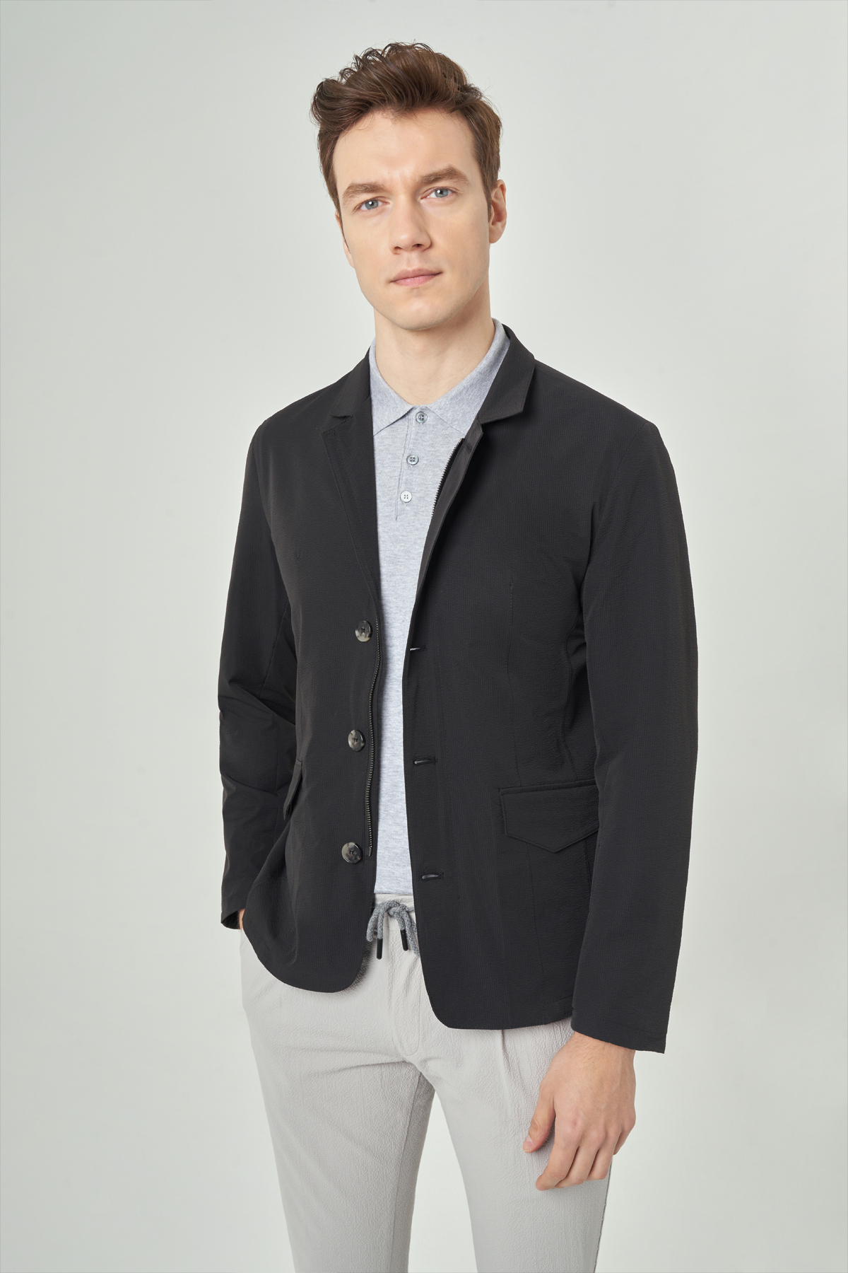 ميزات معطف رجالي أسود بأزرار من Bisse