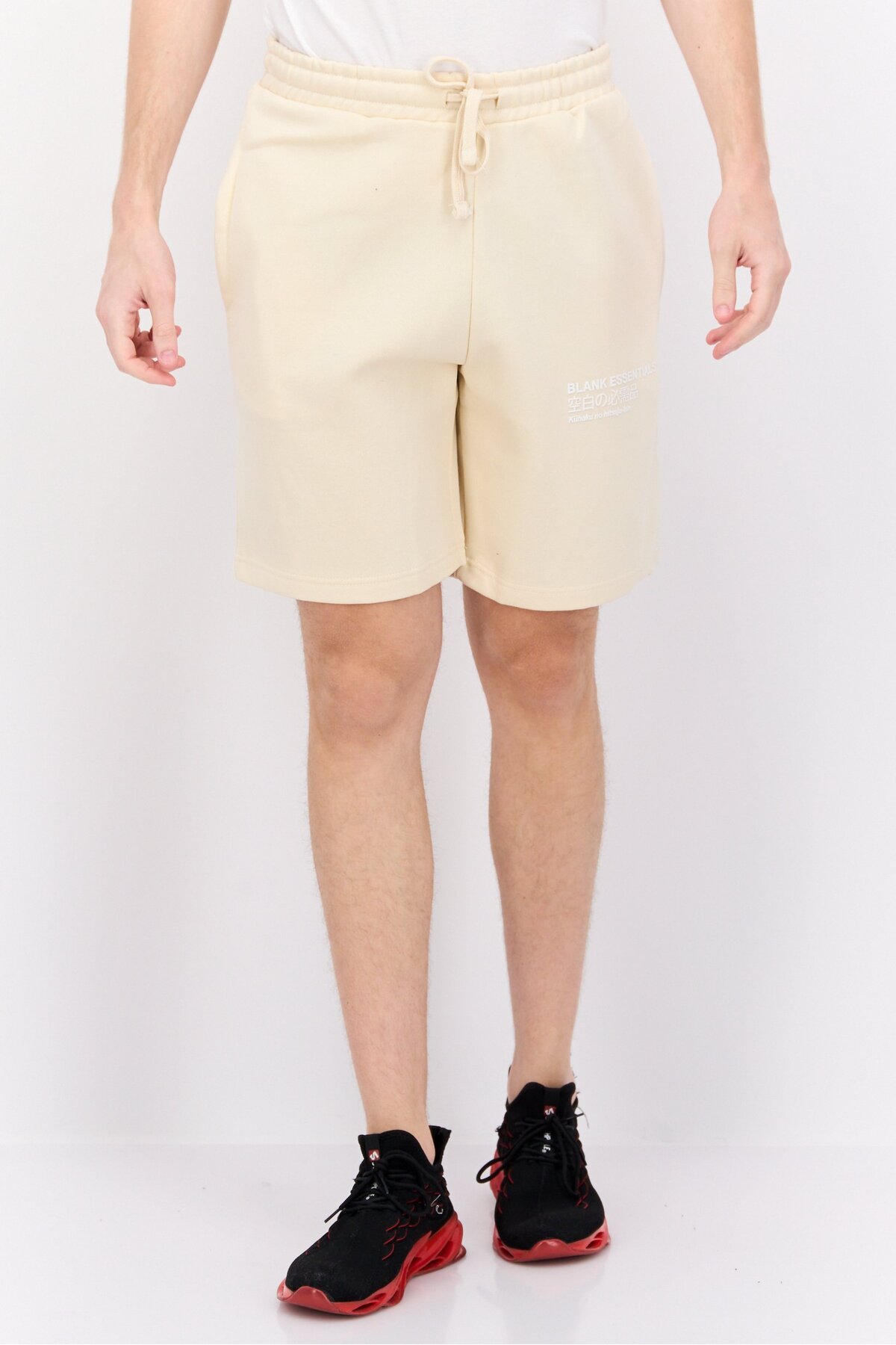 BLANK ESSENTIALS شورت رجالي أساسي بشعار العلامة التجارية، بيج