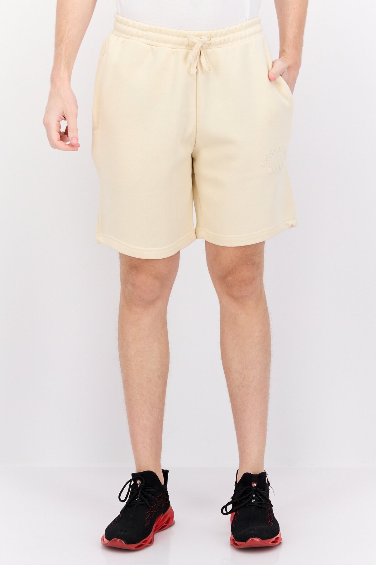 ميزات شورت رجالي أساسي بشعار العلامة التجارية، بيج من BLANK ESSENTIALS