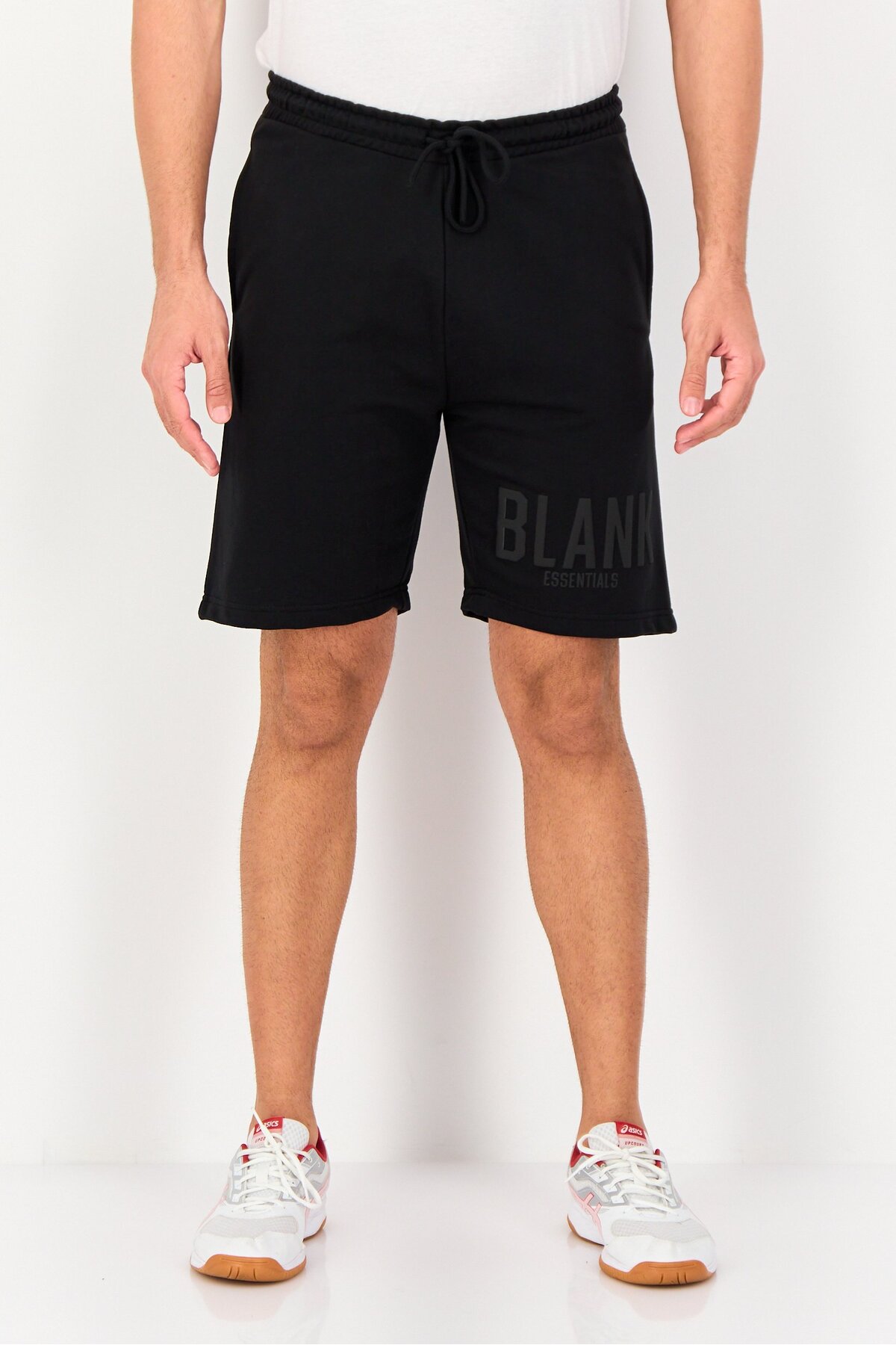 BLANK ESSENTIALS شورت رجالي أساسي بشعار العلامة التجارية، أسود
