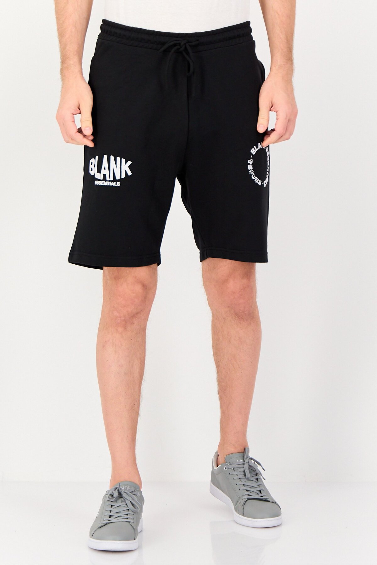 ميزات شورت رجالي أساسي بشعار العلامة التجارية، أسود من BLANK ESSENTIALS