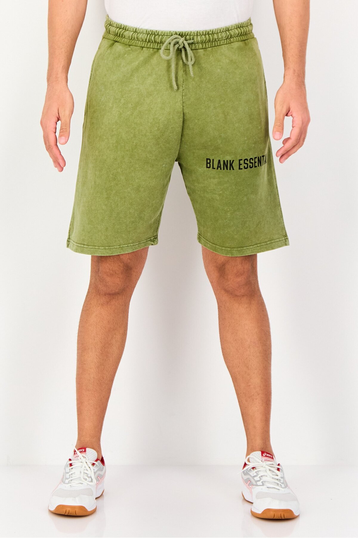 ميزات شورت رجالي أساسي بشعار العلامة التجارية، زيتوني من BLANK ESSENTIALS