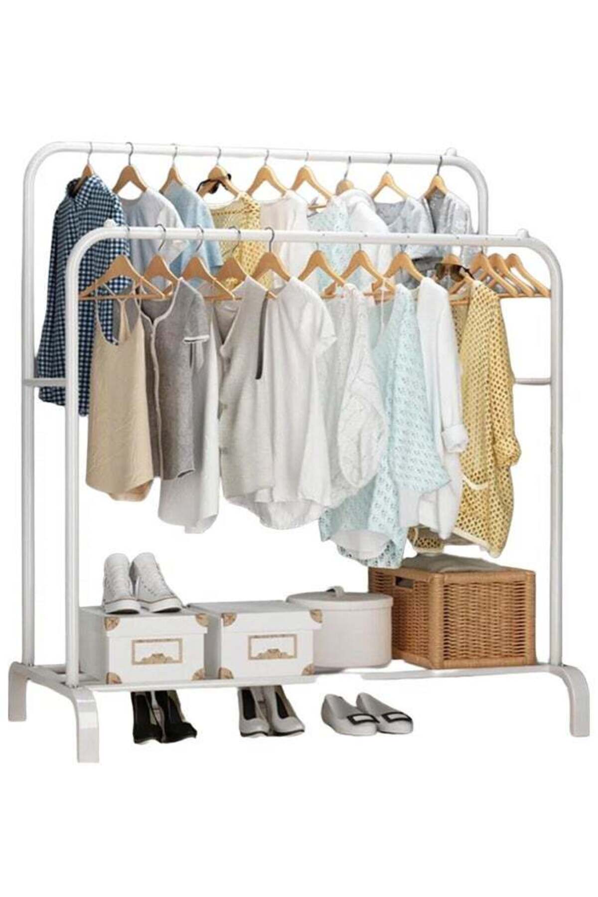 BLOOMING TIME علاقة ملابس مزدوجة الصفوف، بيضاء