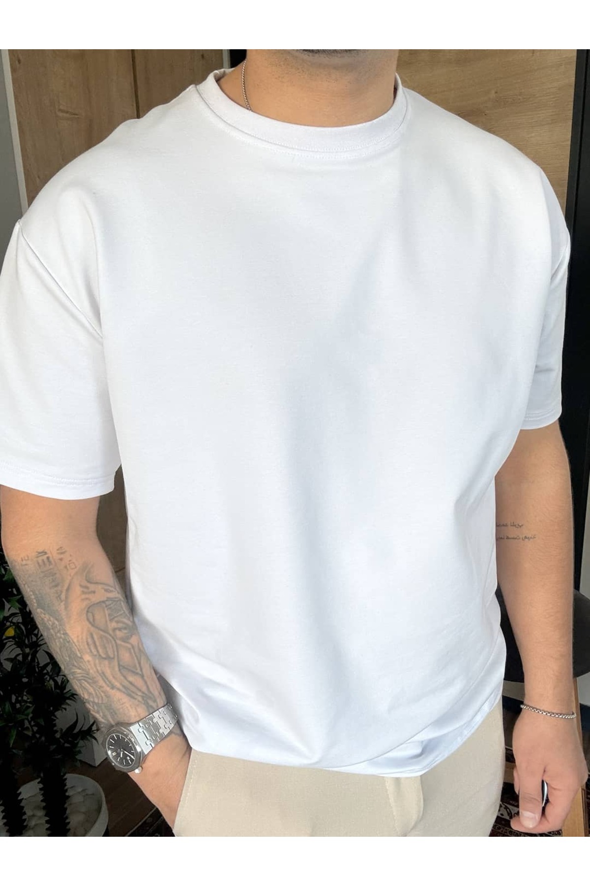 blucombin تي شيرت أساسي بقصة واسعة وسميك مكون من خيطين