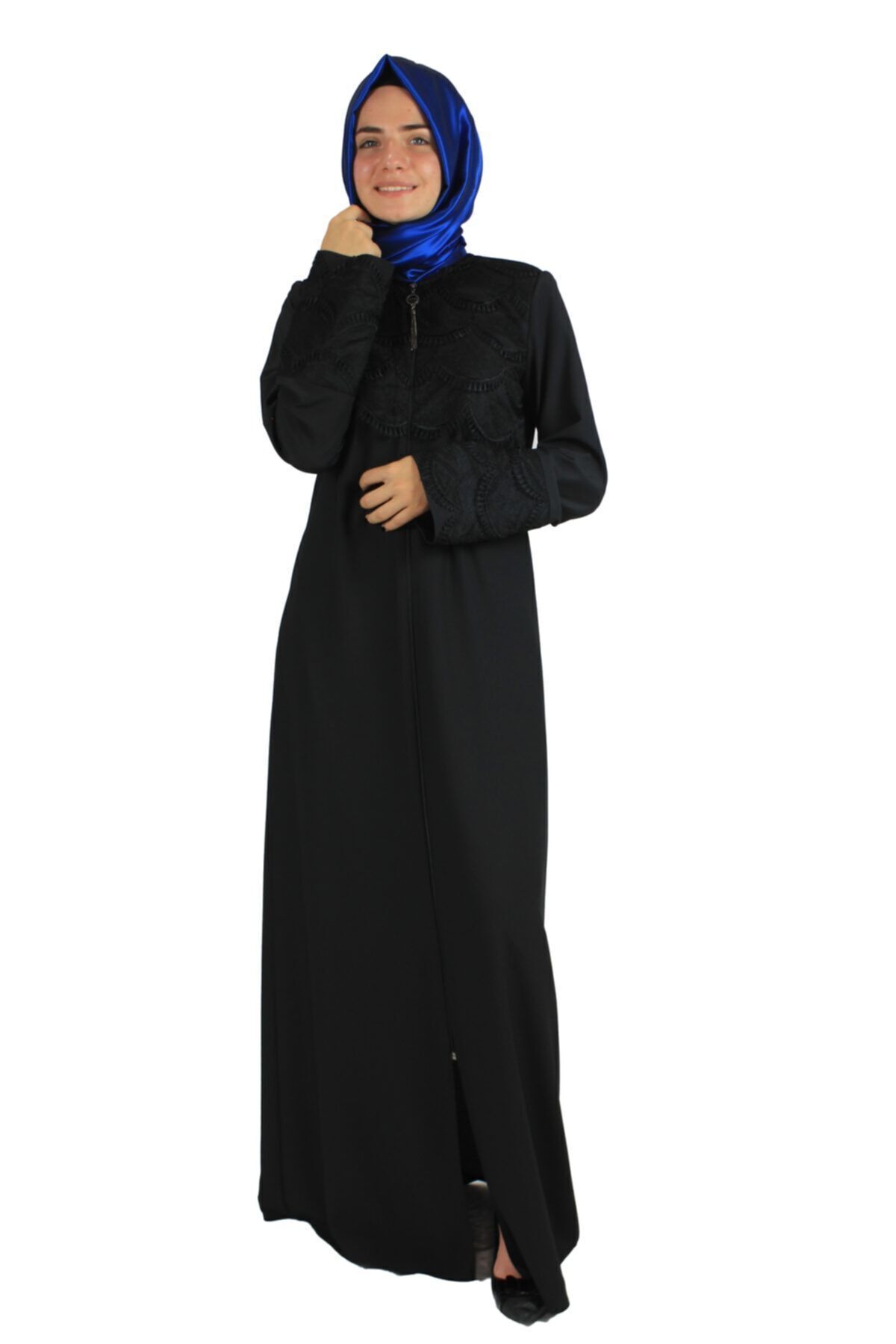 Bluence قوس Ferace أسود مع سحاب أمامي من الدانتيل
