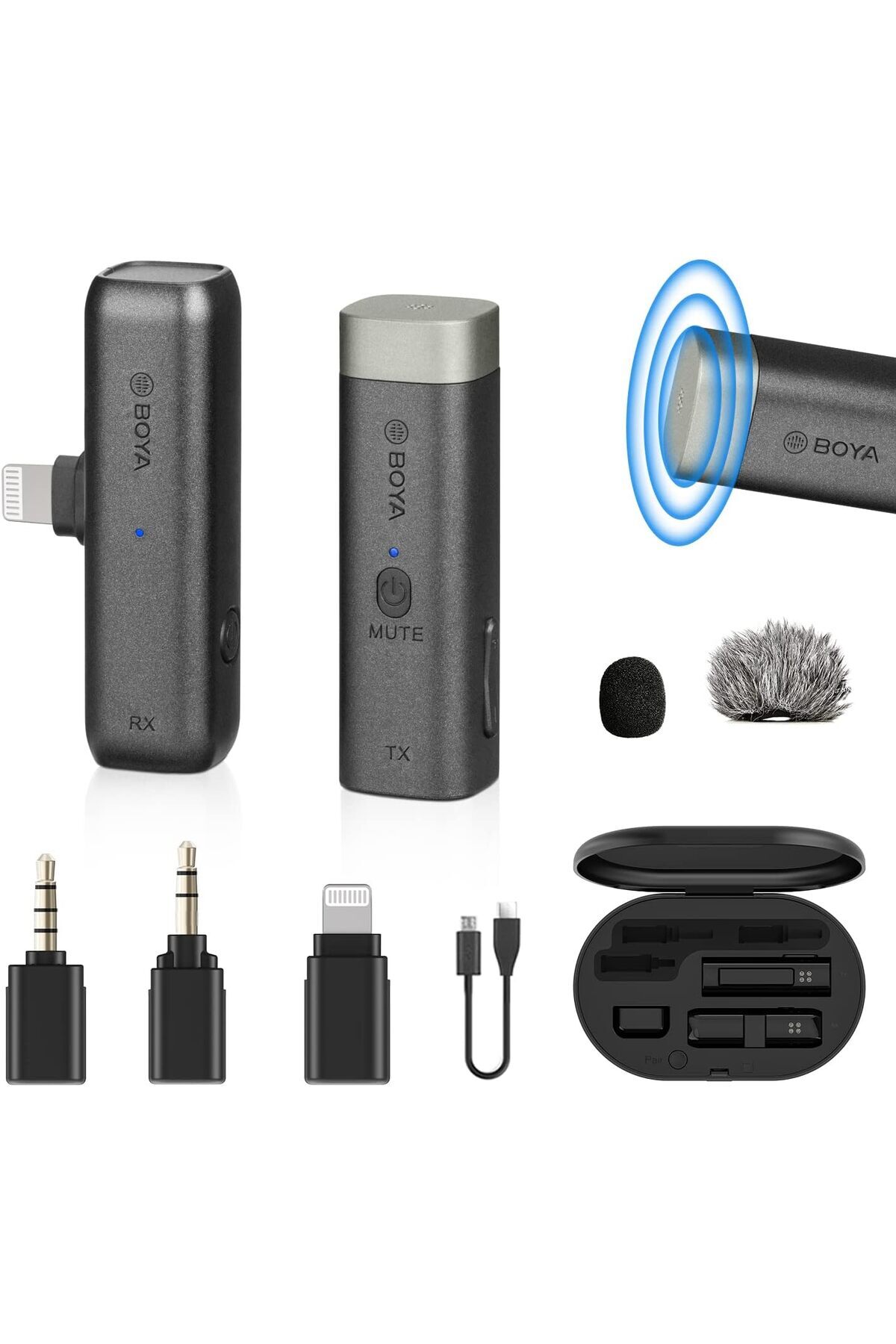 ميزات ميكروفون لافالير لاسلكي BY-WM3D، أسود من BOYA
