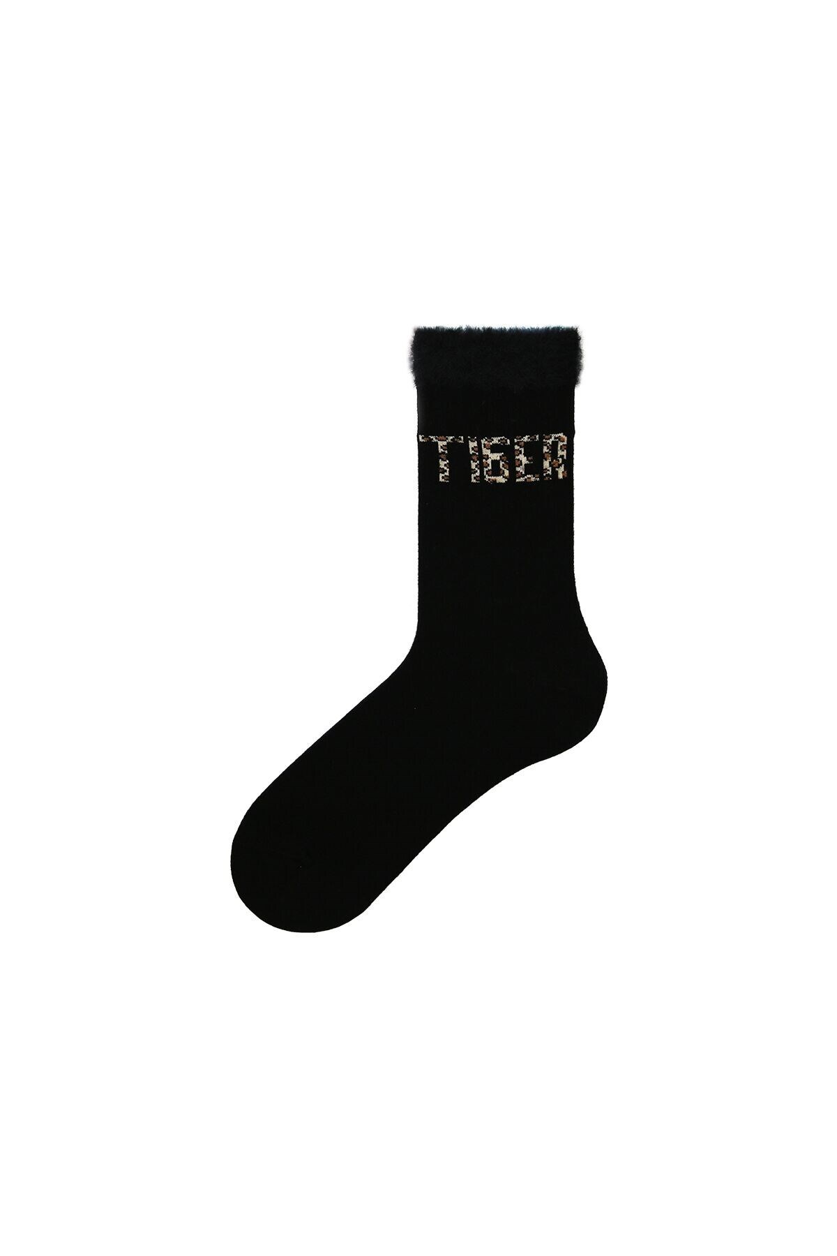 Bross جوارب نسائية سوداء منقوشة بنقشة الفهد