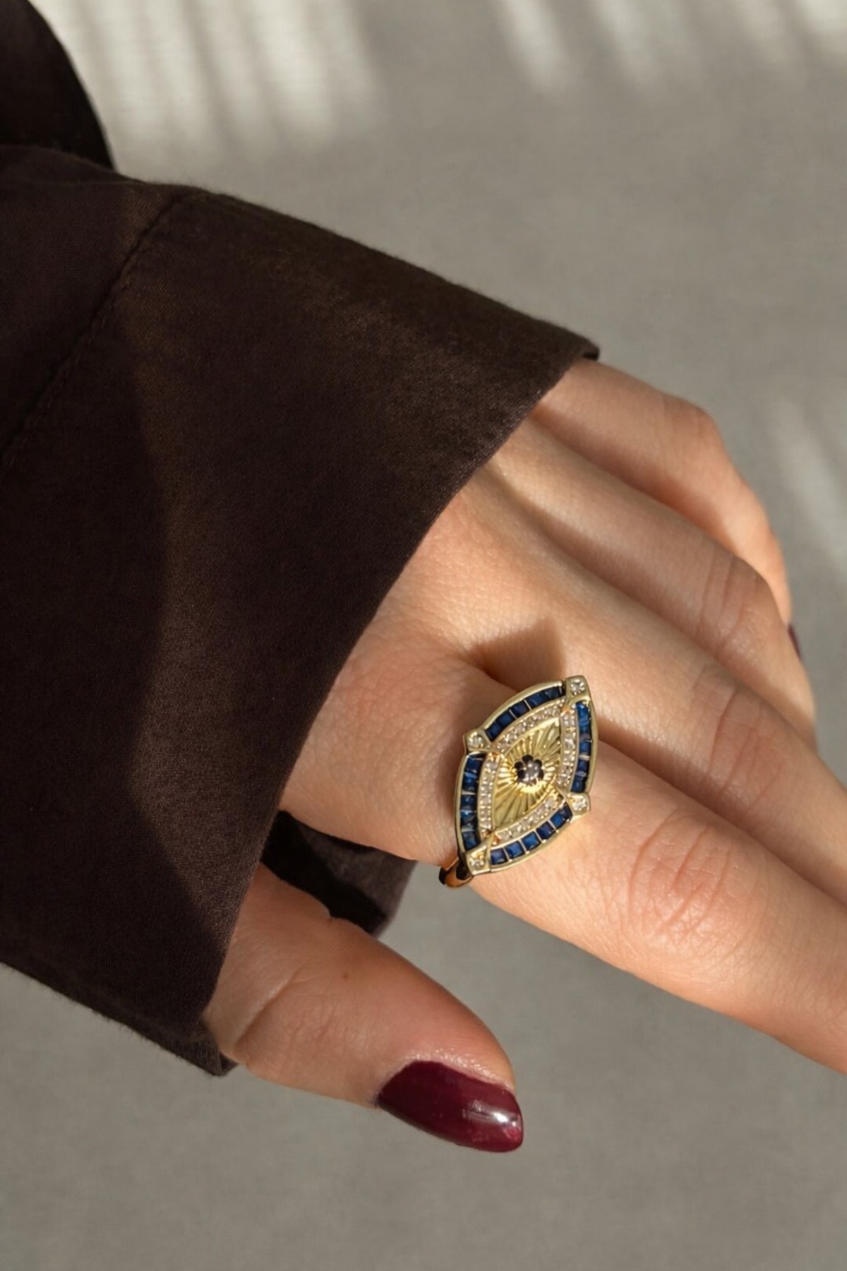 ميزات خاتم ذهبي قابل للتعديل مرصع بحجر العين الزرقاء من Bubbleatelier