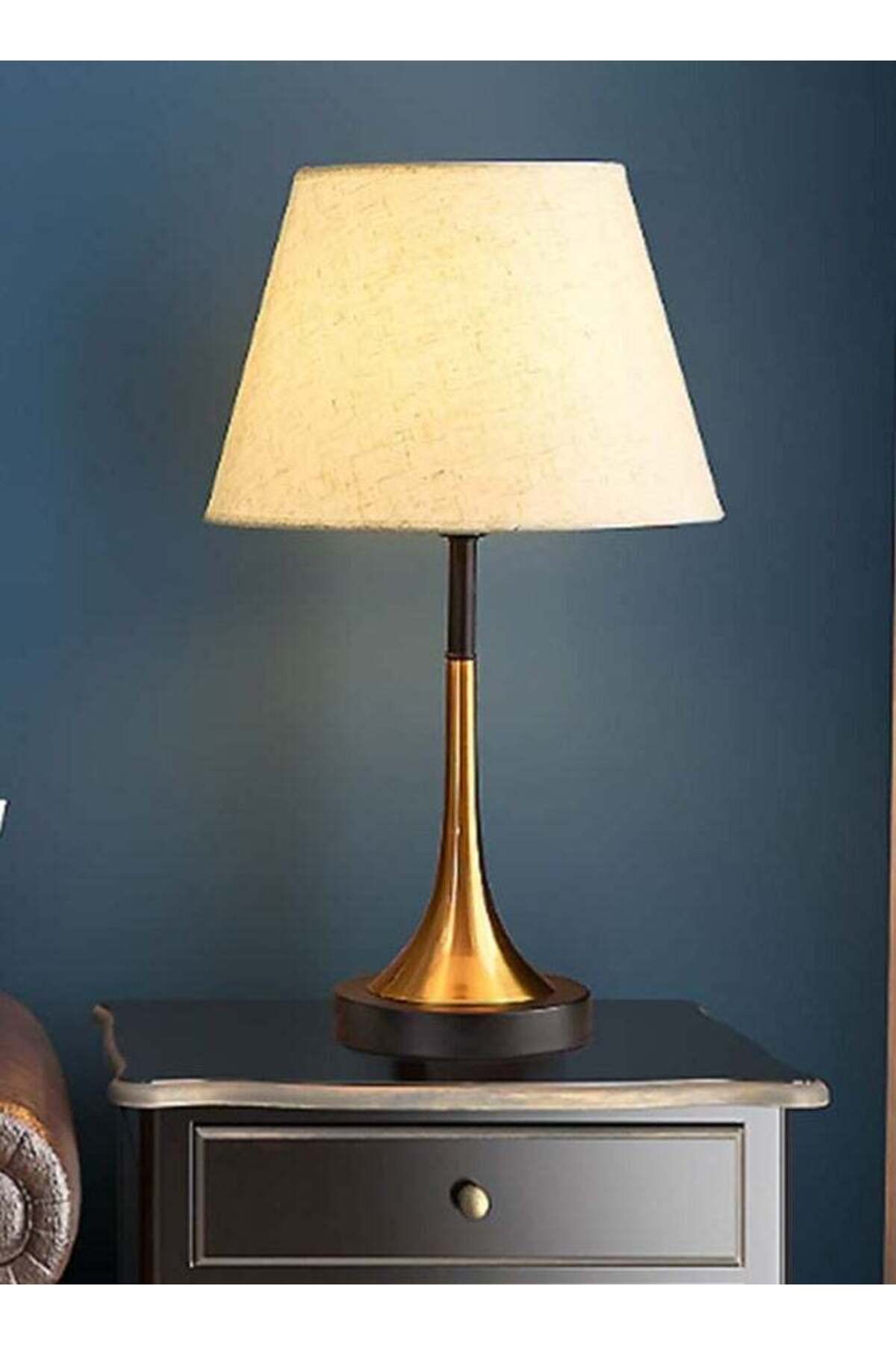 ميزات مصباح طاولة عتيق E27 مع غطاء من الكتان ومقبس من Bukela