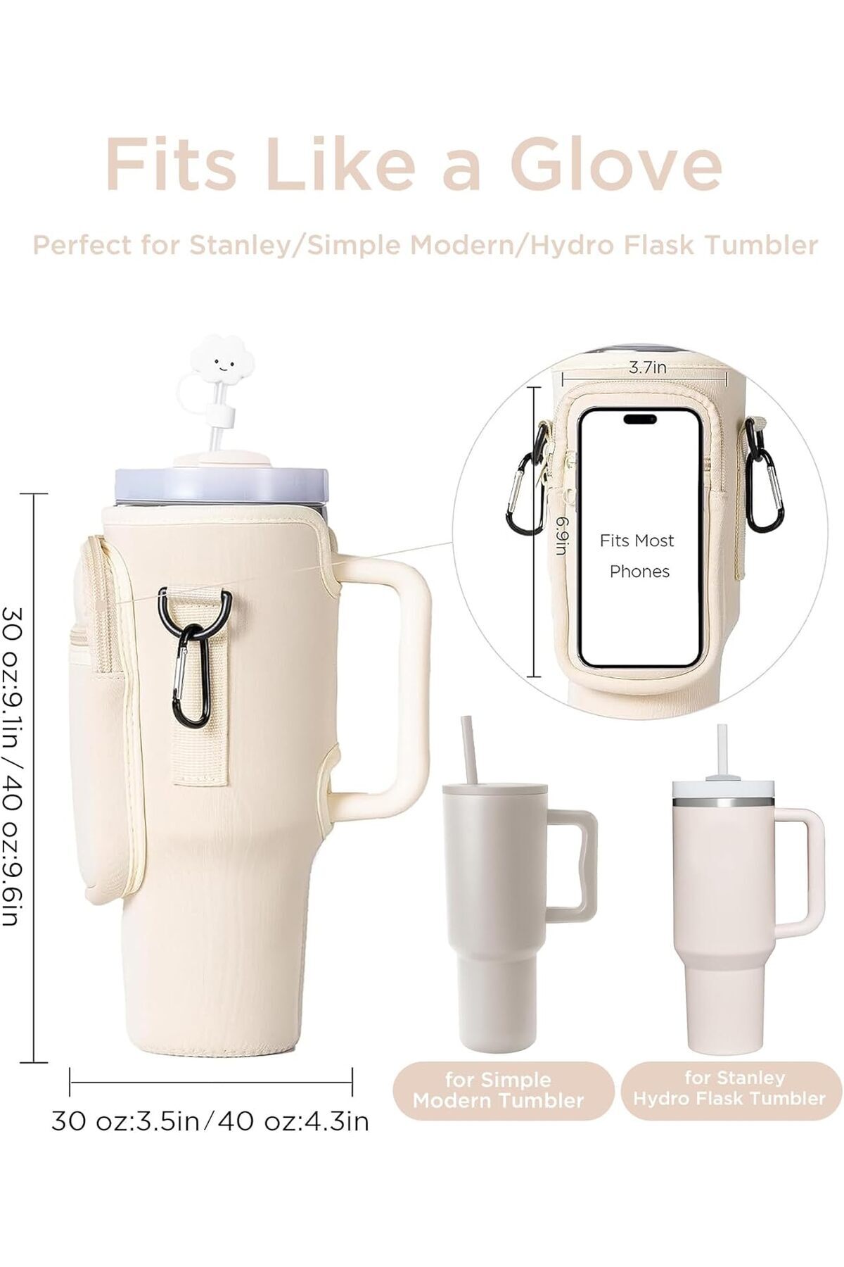 Adjustable strap, straw cover, front pockets