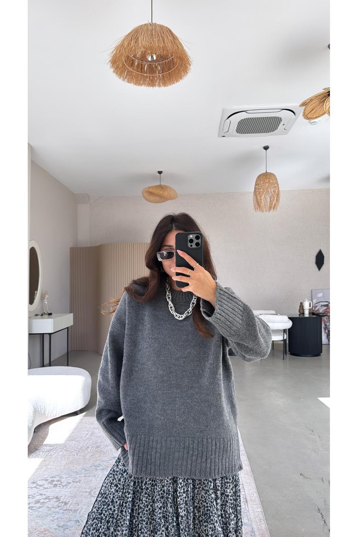 ميزات سترة أساسية ذات ياقة دائرية من أنثراسايت يووش من Buket Teke