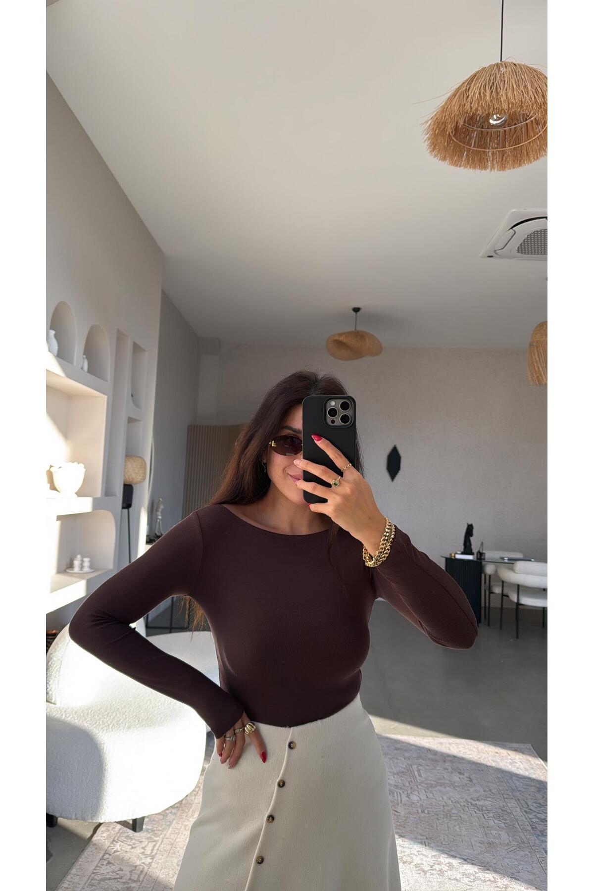 ميزات بلوزة أساسية بأكمام طويلة باللون البني من Pyr من Buket Teke