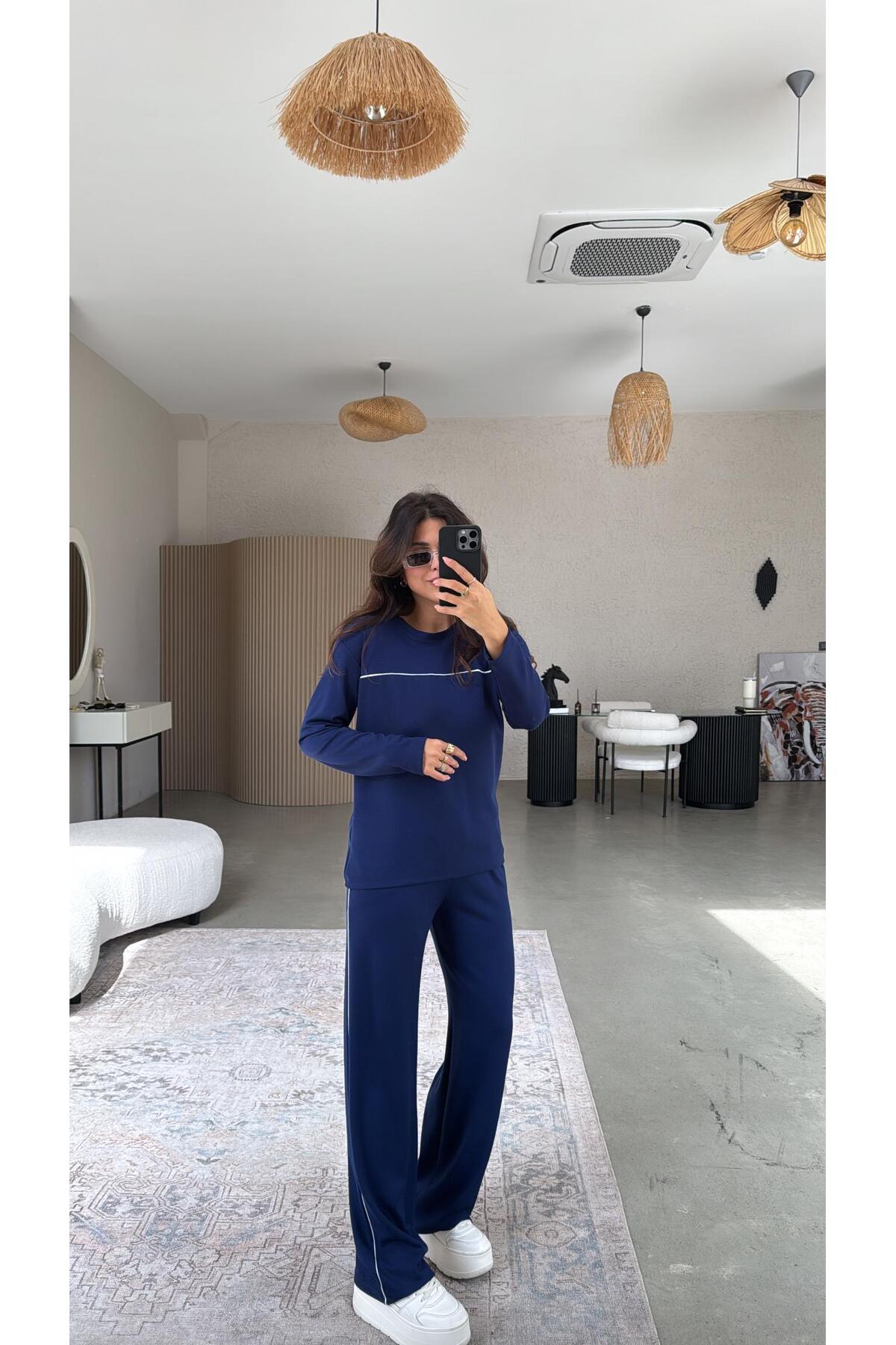 ميزات حواف أسطوانية مجموعة من الملابس المصنوعة من المودال باللون الأزرق الداكن من Buket Teke