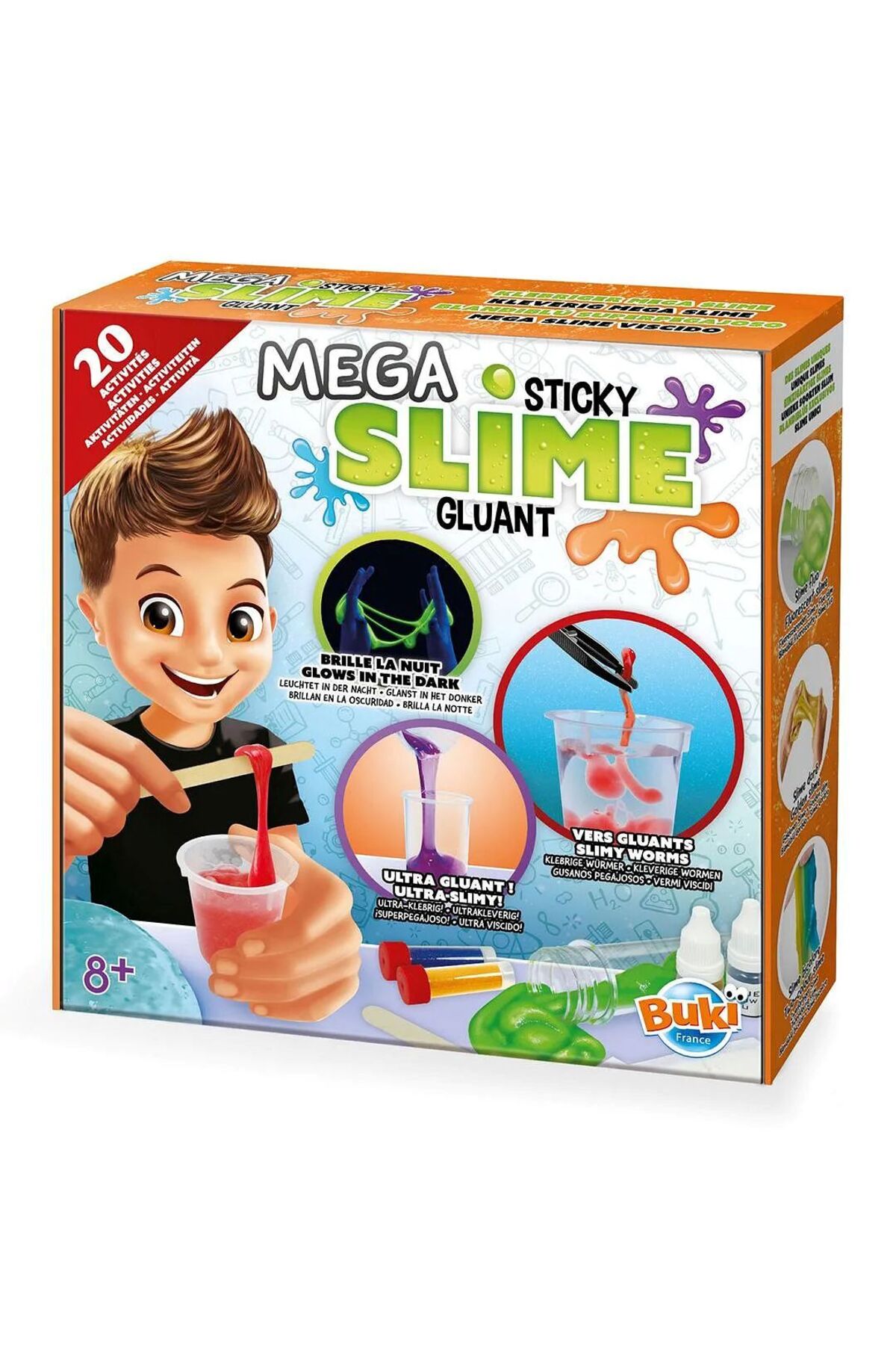 20 engaging activities centered around slime, exploring different types of textures and creating hundreds of unique combinations, including phosphorescent, gold, fluffy, and ultra-slimy creations. This kit provides endless hands-on fun and comes with an instruction sheet featuring clear color illustrations to guide you through each experiment safely.
