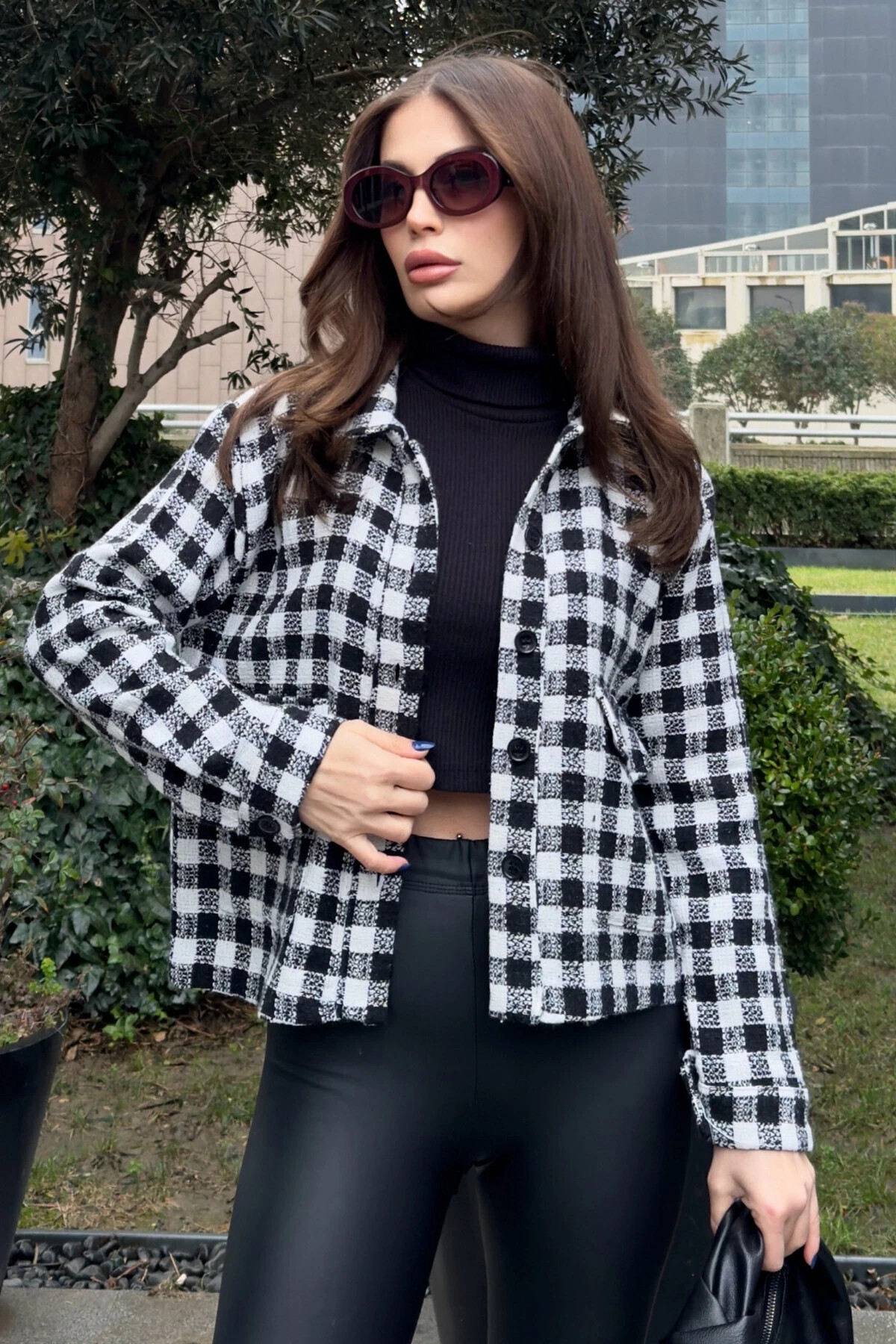 ميزات سترة بنمط منقوش بجيب مزدوج من Buklemoda