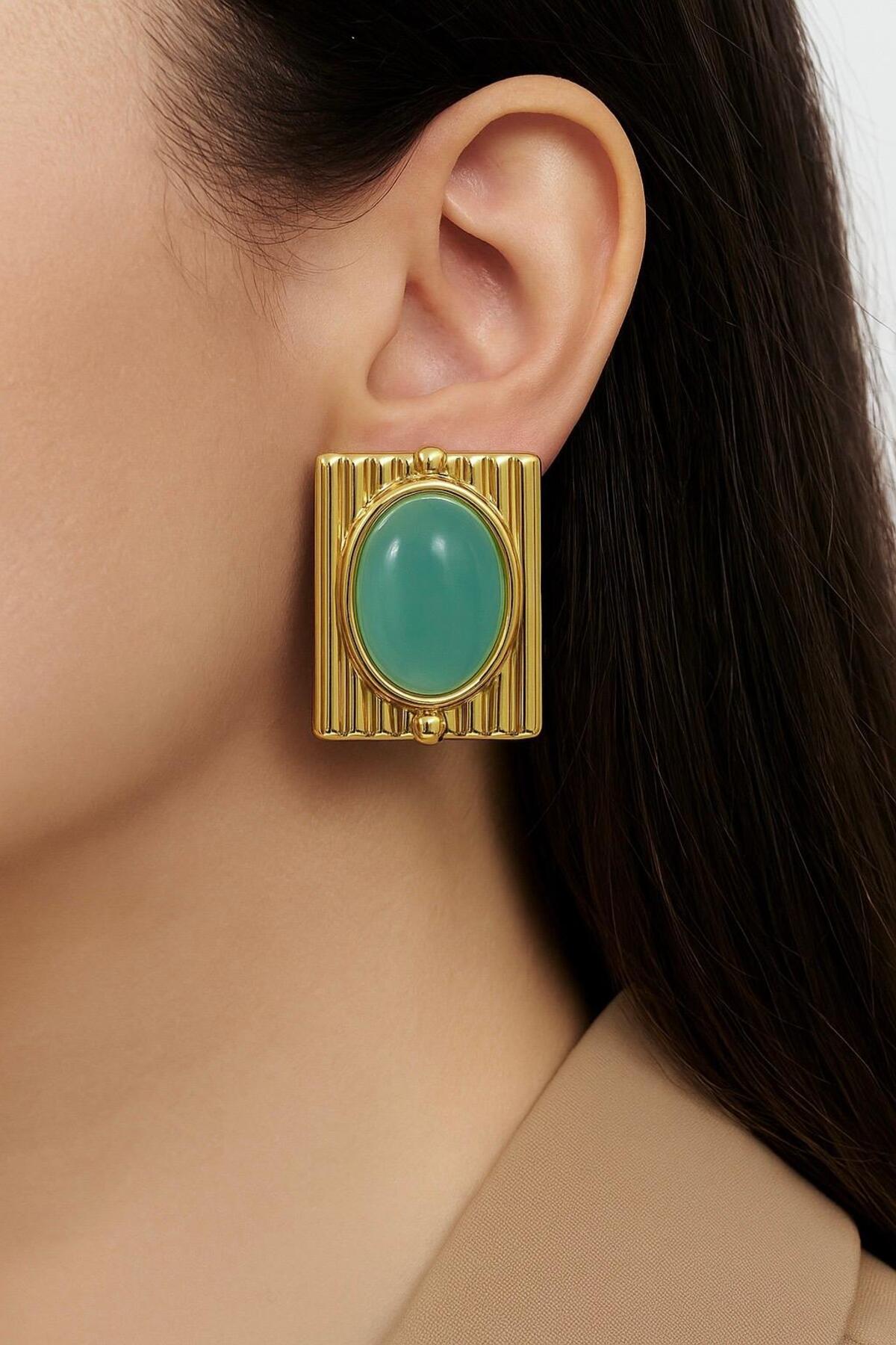 BuradaBuldun أقراط حجرية مستطيلة الشكل باللون الذهبي