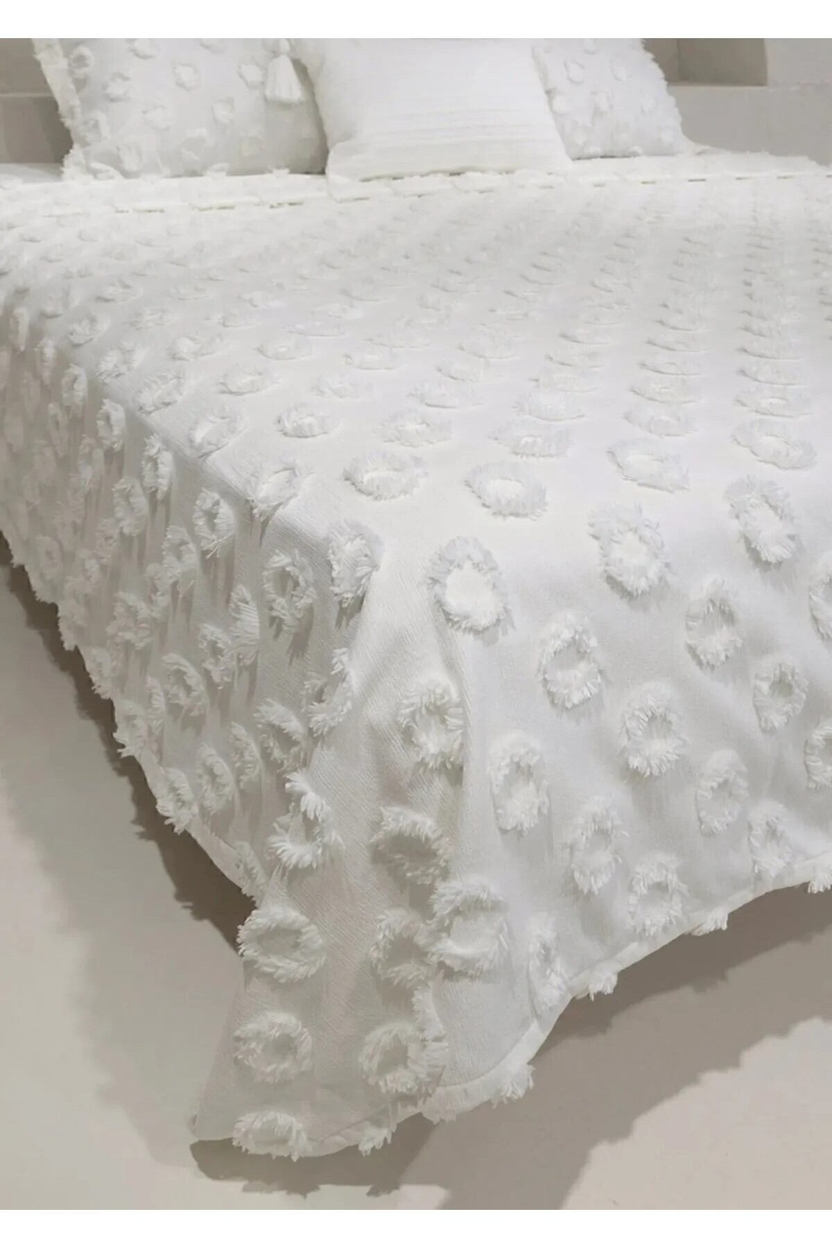ميزات مفرش سرير مزدوج منقوش بتصميم بون بون من 3 قطع من bursa çeyiz