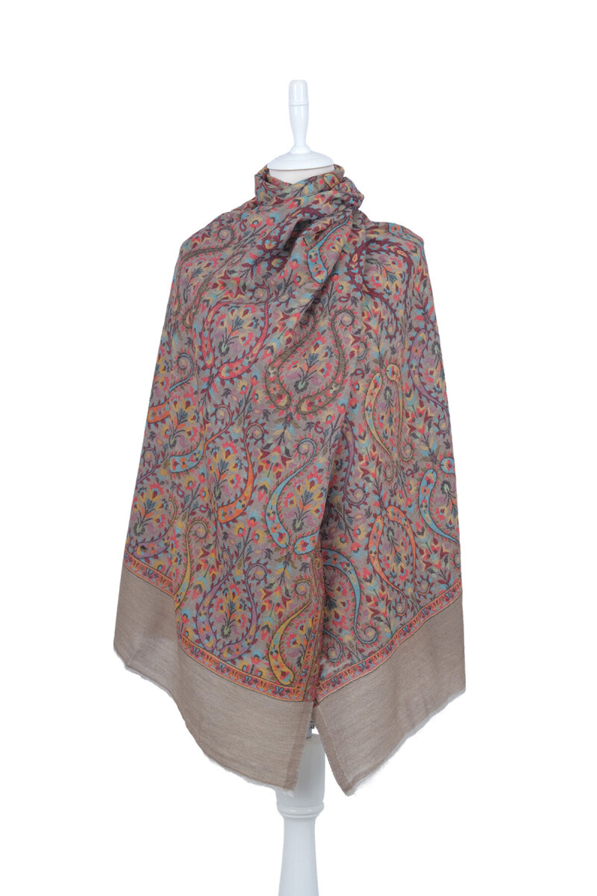 ميزات شال صوف منقوش باللون الرمادي الرماد من Bursa İpek