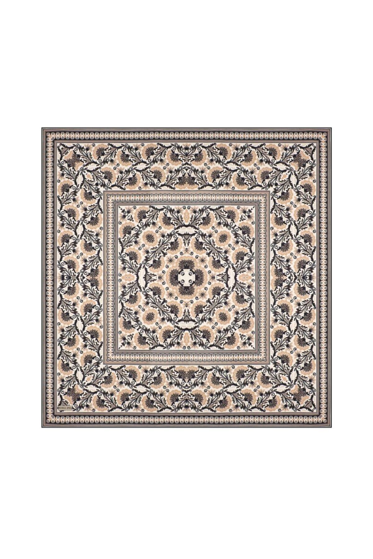 Bursa İpek وشاح حريري من التويل بنمط القرنفل البيج