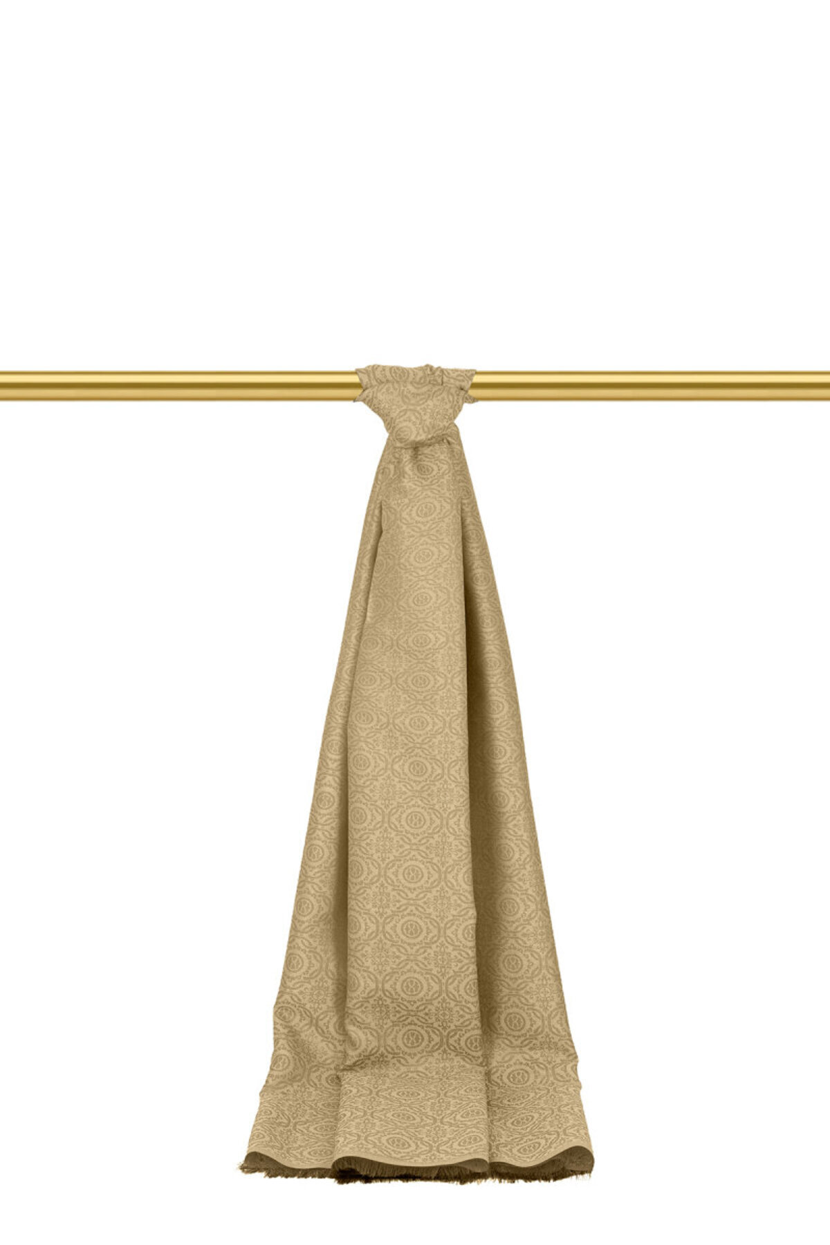 ميزات شال حريري جاكار بنمط حلقات بيج من Bursa İpek