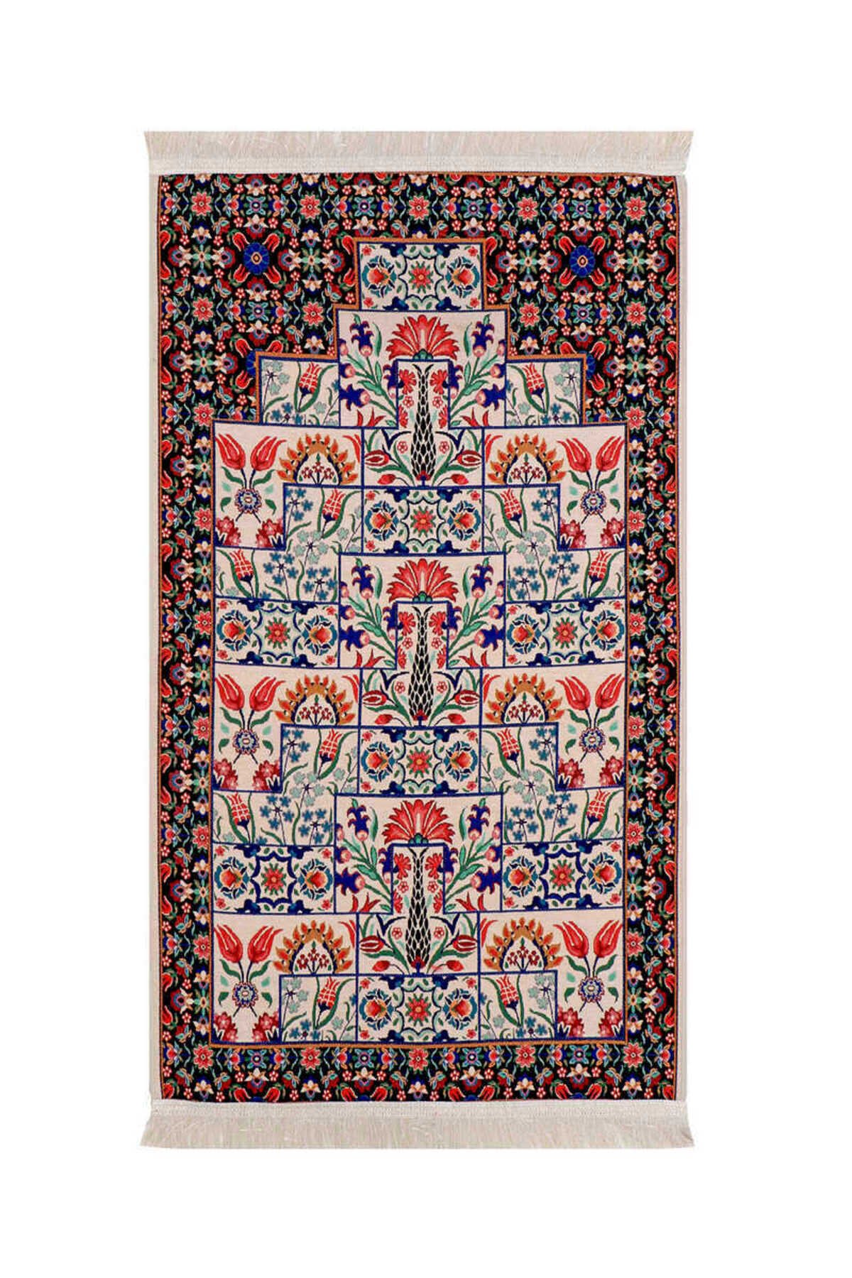 ميزات سجادة صلاة منقوشة بنقش القرنفل الأسود من Bursa İpek