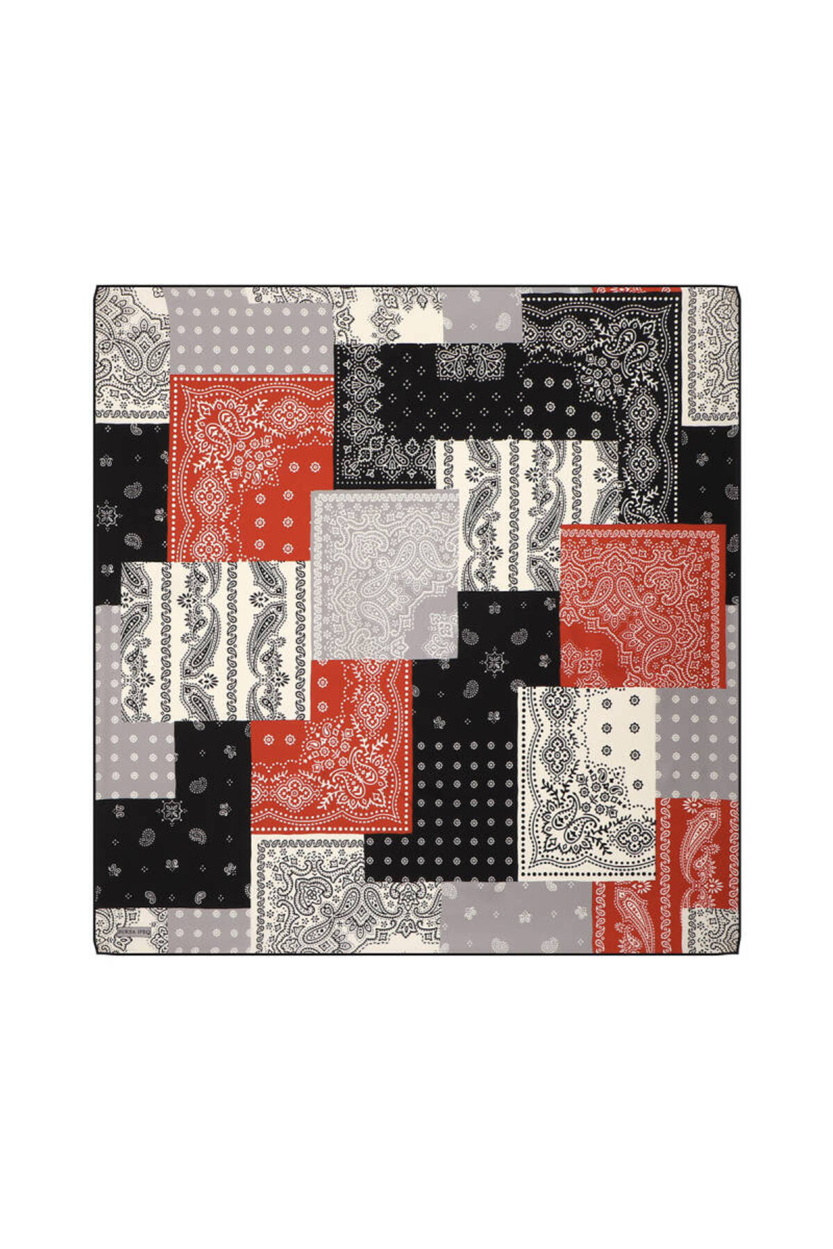 ميزات وشاح حريري بنمط مرقع باللون الأسود من Bursa İpek