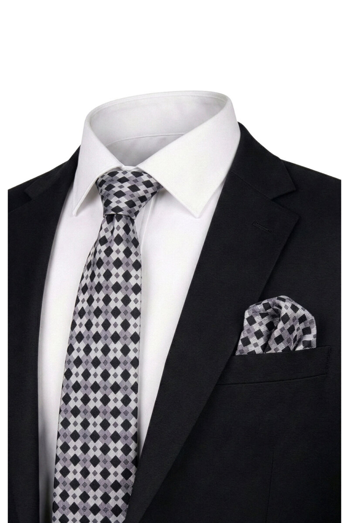 ميزات مجموعة ربطة عنق حريرية منقوشة باللون الأسود من Bursa İpek