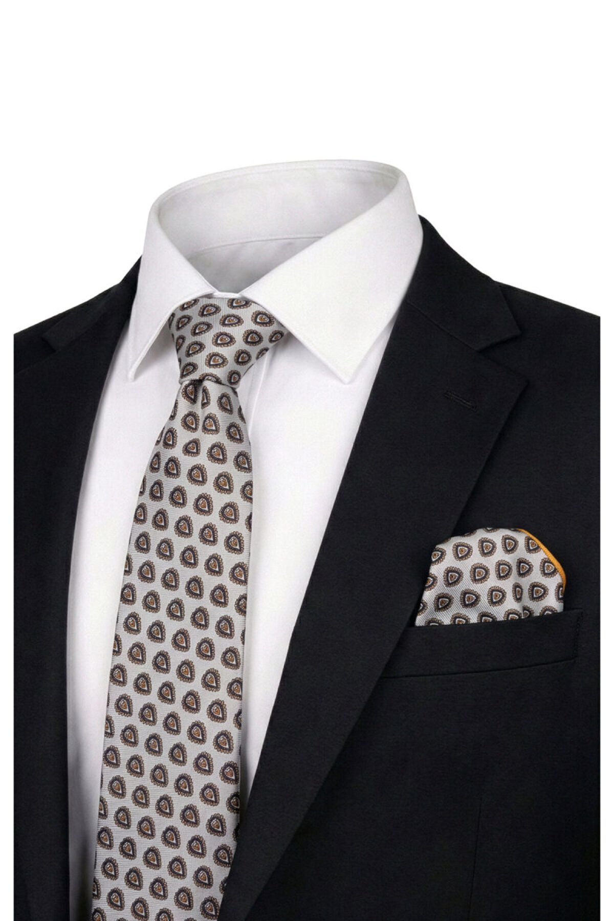 ميزات طقم ربطة عنق حريرية منقوشة بلون الكريم من Bursa İpek