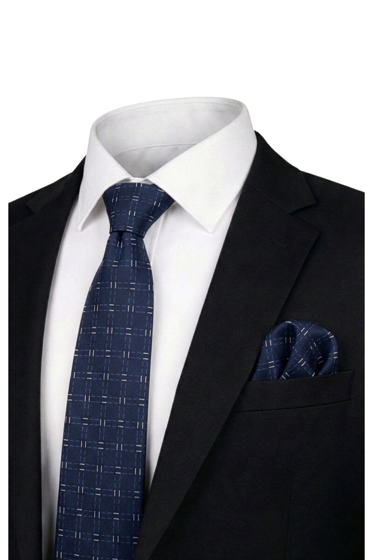 ميزات مجموعة ربطة عنق حريرية منقوشة باللون الأزرق الداكن من Bursa İpek